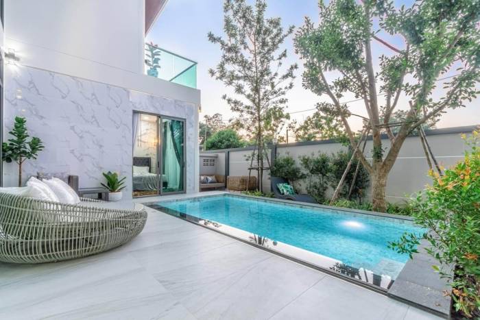 Discover 98 Lakeville Mabprachan, an exclusive condominium development nestled in the serene and highly sought-after area of Pong, Pattaya, Chonburi, Thailand. Located at 96/2 M 3, 98 Lakeville Mabprachan, Soi Pongklang, this project offers a harmonious blend of sophisticated design and tranquil surroundings. With only seven units available, 98 Lakeville Mabprachan presents a unique opportunity for discerning international buyers and renters seeking a modern and intimate living experience. This development is slated for completion in 2024, promising brand-new residences designed for contemporary living. Positioned just moments from the picturesque Mabprachan Lake, residents can enjoy a peaceful ambiance with convenient access to a variety of recreational activities along the lakeside. While the original description details detached homes, 98 Lakeville Mabprachan is a condominium project, offering a distinct lifestyle within this desirable location. Its prime location near major motorways ensures effortless travel to Pattaya's vibrant lifestyle hubs, esteemed international schools, and world-class golf courses, making it an ideal sanctuary that perfectly balances nature's tranquility with urban accessibility.