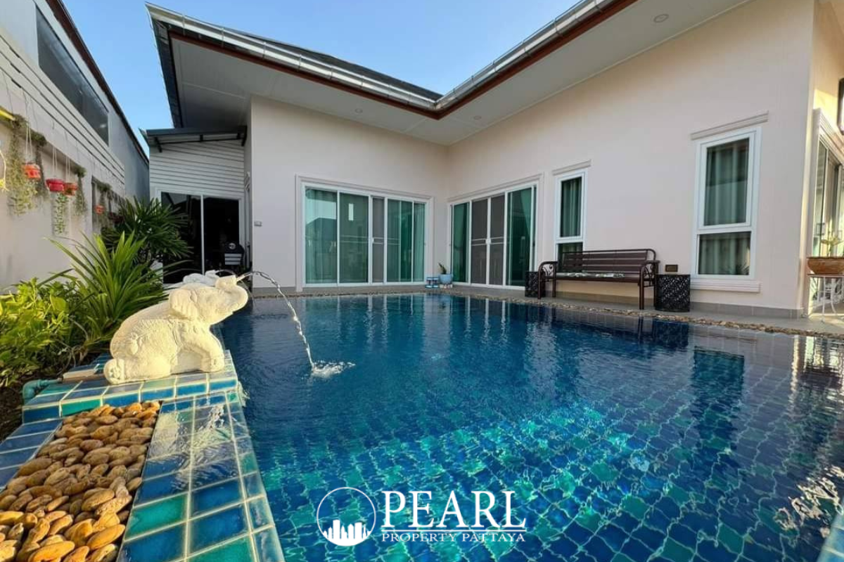 Discover Baan Dusit Garden 6, an exceptional residential development by the esteemed Dusit Group, offering a sophisticated living experience in the tranquil Huai Yai area of Pattaya, Thailand. Completed in May 2021, this exclusive project features 101 meticulously crafted residences, seamlessly blending contemporary luxury with the serene charm of its natural surroundings. Reflecting the developer's commitment to quality and comfort, evident in their other prestigious projects, Baan Dusit Garden 6 stands as a testament to superior design and functionality. Nestled in a peaceful yet convenient location, Baan Dusit Garden 6 provides residents with a modern lifestyle while remaining within easy reach of Pattaya's vibrant attractions. The development offers a diverse selection of detached single-story and two-story houses, many boasting private swimming pools, lush gardens, and fully fitted European kitchens. Residents enjoy a comprehensive array of facilities designed for comfort and security, including 24-hour security, CCTV surveillance, a communal car park, a well-equipped fitness center, a children's playground, a football field, and a tennis court. This pet-friendly community warmly welcomes dogs, cats, and birds, ensuring a harmonious environment for all. The strategic location of Baan Dusit Garden 6 ensures effortless access to a wealth of leisure and entertainment options. A short drive connects you to the pristine sands of Central Pattaya Beach, approximately 3.7 km away, while family-friendly attractions such as Nongnooch Garden, Cartoon Network Water Park, and Silver Lake are also nearby. For international buyers and renters seeking a harmonious blend of peaceful living, convenient amenities, and proximity to tourist hotspots, Baan Dusit Garden 6 presents an unparalleled opportunity for an elevated lifestyle in Pattaya.