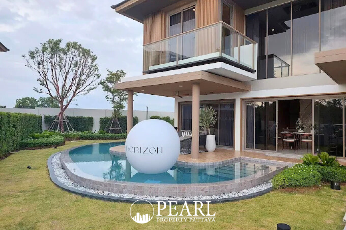 Horizon by Patta introduces a new standard of luxury living in Nong Pla Lai, Pattaya. This exclusive residential development, crafted by Patta Development Co., Ltd., offers a serene escape across approximately 40 rai (64,000 sqm). Comprising 114 meticulously designed detached homes, Horizon by Patta seamlessly blends modern architecture with the tranquility of its natural surroundings, providing an ideal setting for discerning international buyers and renters seeking an elevated lifestyle in Thailand. Each home within Horizon by Patta is thoughtfully designed with spacious layouts, offering 3 to 4 bedrooms, high ceilings, and open-plan living areas that maximize natural light and airflow. Residents will appreciate the private gardens, with options for personal swimming pools, alongside modern European-style kitchens and convenient double parking spaces. The development is nearing completion, with an expected handover in Q4 2024, ensuring a timely move into your dream home. Beyond the individual residences, Horizon by Patta boasts an impressive array of community amenities designed for comfort and leisure. A sophisticated clubhouse features a fully equipped fitness center and sauna, complemented by a communal swimming pool and a dedicated children's playground. Lush communal gardens provide peaceful retreats, while 24-hour security with CCTV surveillance ensures peace of mind. The development also embraces a pet-friendly environment, welcoming all members of your family. Strategically located in Nong Pla Lai, Horizon by Patta offers excellent connectivity to major highways, including Motorway No. 7 and Highway No. 36, facilitating effortless travel to Pattaya city center, Bangkok, and Rayong. The development is just 1 km from the prestigious Regents International School Pattaya and is surrounded by other esteemed educational institutions, healthcare facilities, and shopping centers. Furthermore, residents can indulge in nearby attractions such as the renowned Siam Country Club golf courses and the picturesque Mabprachan Reservoir, offering a perfect balance of convenience and leisure.
