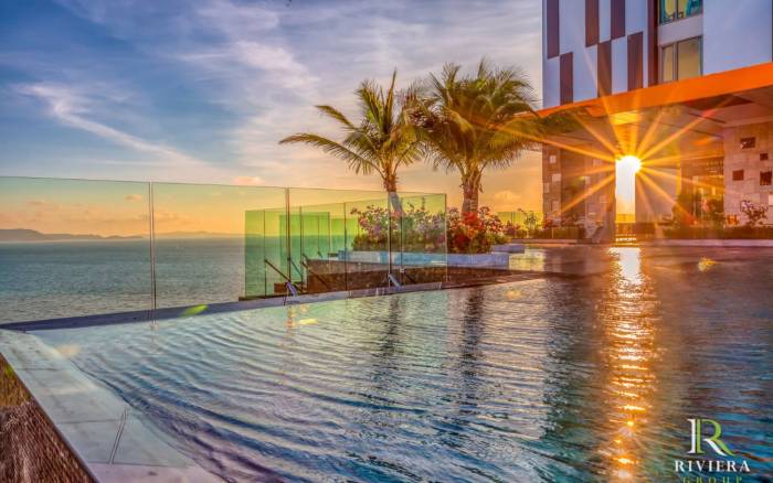 Experience unparalleled luxury at Riviera Monaco, an award-winning high-rise condominium redefining sophisticated living in Na Jomtien. Completed in 2020 by the esteemed Riviera Group, this prestigious development has been consistently recognized for its outstanding design and opulent interiors, promising an elevated lifestyle for discerning international buyers and renters. Strategically located on Na Jomtien Soi 4, Riviera Monaco offers a serene escape from the vibrant heart of Pattaya City, while maintaining convenient access to urban amenities. A leisurely five-minute stroll brings you to the pristine sands of Najomtien Beach, blending the tranquility of a seaside retreat with the ease of city living. This 40-story architectural marvel houses 412 meticulously designed units, ranging from studios to expansive four-bedroom apartments, all delivered fully furnished to the highest standards of luxury and convenience. Residents are indulged with a comprehensive suite of world-class amenities. Ascend to the 21st floor to discover the breathtaking Infinity Edge Cantilevered Sky Pool and Sky Gym, offering panoramic vistas that stretch to the horizon. The 32nd-floor relaxation Sky Garden provides another idyllic sanctuary. Further enhancing the opulent lifestyle are a grand hotel-style lobby, a tennis court, a dedicated clubhouse, a vibrant kids' club, and a sprawling ground-floor swimming pool nestled within lush, tropical landscaping. Riviera Monaco truly embodies a harmonious blend of modernity, comfort, and exclusive resort-style living.