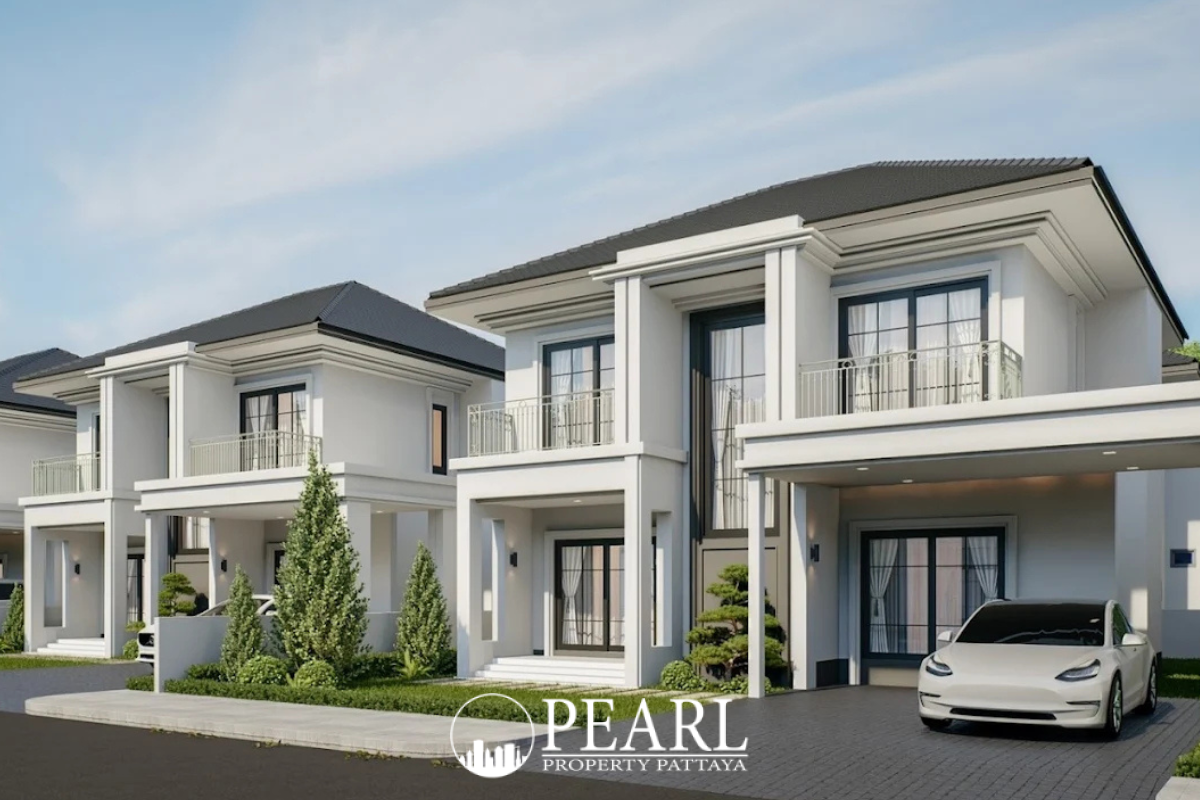 Pearl Property Pattaya proudly presents Serene Home, an exclusive collection of luxury detached houses nestled in the serene Huay Yai district, just moments from the motorway connecting to vibrant Pattaya. This boutique development, slated for completion in 2025, offers a tranquil sanctuary designed for discerning families seeking a refined lifestyle. Each residence embodies modern architectural elegance, featuring high ceilings, meticulously crafted interiors, and premium finishes throughout, ensuring both comfort and sophistication. Serene Home offers spacious living with land plots ranging from approximately 244 to 416 square meters and a generous usable area of around 190 square meters per unit. Each house is thoughtfully designed with four bedrooms, three bathrooms, a private garden, and two dedicated parking spaces, catering to the needs of contemporary family living. The emphasis on natural light, ample garden space, and optimized layouts creates an environment of peaceful luxury, distinguishing Serene Home from larger, more impersonal developments. Strategically located, Serene Home provides the perfect balance between peaceful suburban living and convenient access to Pattaya's amenities. Its proximity to the motorway ensures swift travel to Jomtien Beach, premier shopping centers, reputable hospitals, and international schools. Residents will also appreciate easy access to recreational havens such as the Siam Country Club and Mabprachan Reservoir, offering an unparalleled lifestyle experience where tranquility meets connectivity.