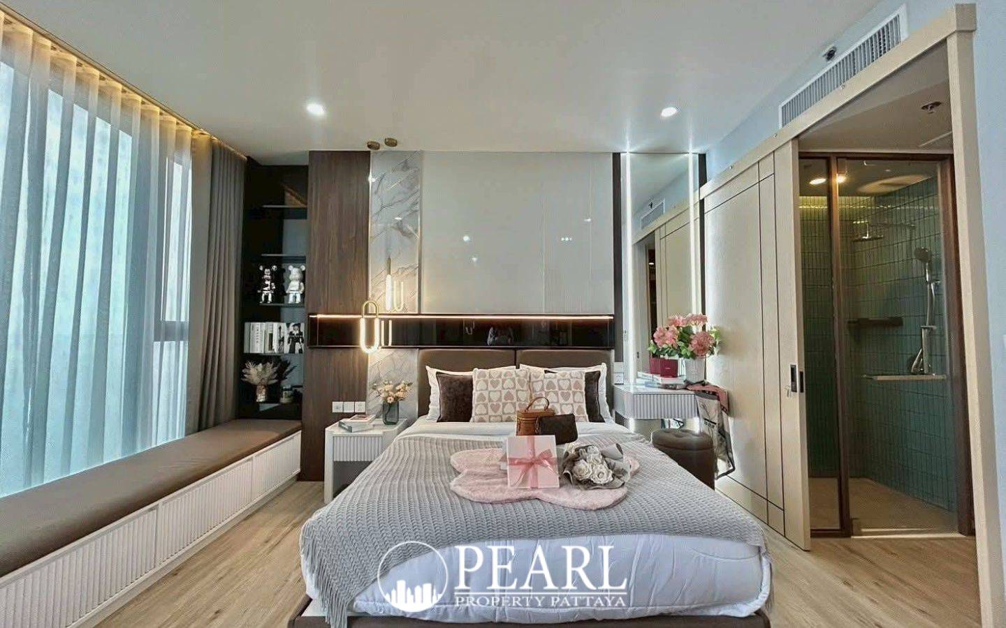 Pearl Property Pattaya is delighted to present an exceptional opportunity to own a luxury sea-view condominium at AROM Wongamat, an address synonymous with sophisticated beachfront living. This exquisite one-bedroom residence, perched on the 42nd floor, offers breathtaking 180-degree unobstructed sea views, providing a constant panorama of the Gulf of Thailand. Experience the ultimate in direct beachfront living, with no road separating you from the pristine sands of Wongamat Beach. With only five units on this exclusive floor, residents are assured unparalleled privacy and tranquility. This meticulously designed 45.73 square meter unit comes fully built-in and ready for immediate occupancy. It features a spacious living area complemented by a large screen TV, a fully equipped kitchen with a refrigerator and microwave, and a dining table perfect for intimate meals. The private balcony, furnished with a table and chairs, invites you to savor the refreshing sea breeze and spectacular sunsets. Comfort is paramount, with two built-in air conditioners zoned separately for optimal climate control. The two bathrooms are appointed with smart toilets and water heaters, adding a touch of modern luxury. AROM Wongamat redefines luxury with its hotel-style facilities and world-class amenities. Residents benefit from direct beach access, exclusive resort-style communal areas, and a cutting-edge facial recognition elevator access system for enhanced security and convenience. Further elevating the living experience are dedicated concierge services and valet parking. This is a rare chance to acquire a premium beachfront residence in one of Pattaya's most coveted locations, offering a true seaside lifestyle combined with unparalleled convenience and opulence. Priced at 14,000,000 Thai Baht under Thai quota ownership, this property represents an outstanding investment. Contact Pearl Property Pattaya today to arrange a private viewing and discover the epitome of luxury coastal living.