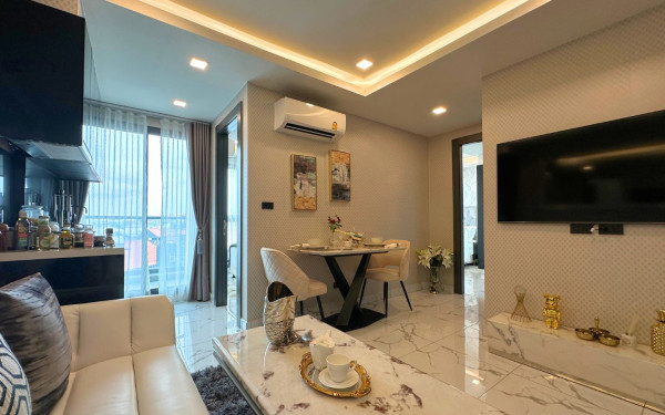 Discover unparalleled luxury and convenience at Arcadia Millennium Tower, a prestigious new development by Heights Holdings, perfectly situated in the vibrant heart of Central Pattaya. This magnificent 46-story high-rise condominium offers 803 meticulously designed units, embodying modern elegance and sophisticated living. Residents are welcomed by a grand, hotel-style lobby and can indulge in an array of world-class amenities, including a serene Zen-style resting area amidst lush gardens, a dedicated BBQ zone, a state-of-the-art gym, and an engaging game club. For ultimate relaxation, a luxurious spa and sauna await. This exquisite 2-bedroom, 1-bathroom condominium spans a comfortable 43.00 square meters, offering an ideal blend of style and functionality. Priced at ฿5,163,600, it represents an exceptional opportunity for discerning international buyers and renters seeking a premium lifestyle in Thailand. Beyond the private sanctuary of your home, experience breathtaking 270-degree panoramic views of Pattaya Bay and the captivating Koh Larn from the building's impressive infinity-edge pool or the stunning rooftop swimming pool and adjacent resting area. Arcadia Millennium Tower is more than just a residence; it's a gateway to an exhilarating urban experience. Its prime inner-city location places you within effortless reach of Pattaya's most celebrated attractions. Immerse yourself in a dynamic lifestyle with an abundance of entertainment venues, charming cafes, gourmet restaurants, and expansive shopping centers just moments away. Iconic landmarks such as Pattaya Beach, the lively Walking Street, the picturesque Pratamnak Hill, and the revered Big Buddha Temple are all easily accessible, ensuring every day is filled with discovery and enjoyment.