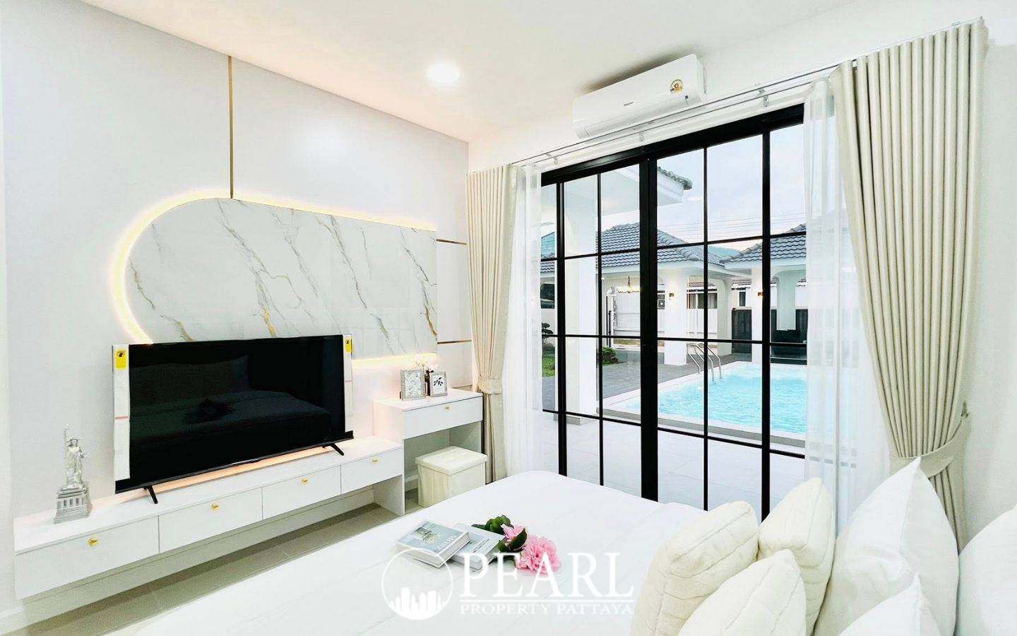 Pearl Property presents this beautiful private pool villa, located in the peaceful yet convenient Soi Siam Country Club, Muay Thai Camp 17/1 area. This spacious single-storey home is fully furnished and ready to move in — ideal for both family living and investment as a daily rental property.