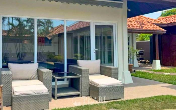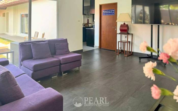 Discover an exceptional opportunity within Baan Balina 2, a prestigious house and villa development gracefully situated in the serene locale of Huay Yai. This exquisite property seamlessly combines a peaceful residential setting with unparalleled convenience, located just 1.2 kilometers from Sukhumvit Road. Enjoy effortless access to Pattaya's renowned attractions, including the vibrant Pattaya Floating Market, the Archery Club, and Tiger Park. The beautiful shores of Jomtien Beach, a popular destination for relaxation, are also a mere five-minute drive away, offering the perfect blend of tranquility and accessibility. This luxurious 3-bedroom, 2-bathroom house boasts a generous 504 square meter land area, complemented by a spacious 280 square meters of living space. Designed for comfort and modern living, the residence features dual entry-exit access, large solar panels for enhanced energy efficiency, and comes fully furnished. The interior highlights a stylish European kitchen, a dedicated dining area, and a comfortable living area, all thoughtfully appointed. Step outside to your private oasis, complete with a lush garden and a refreshing swimming pool, perfect for unwinding or entertaining. Baan Balina 2 offers an array of outstanding communal facilities designed to elevate your lifestyle. Residents benefit from a large communal swimming pool, a well-appointed clubhouse for social gatherings, beautifully landscaped gardens, and a fully equipped fitness center. Additional amenities within the home include a dedicated barbecue area for outdoor entertaining, an extra guest room ideal for visitors or as a home office, and a convenient storage room. Enhanced security features, including CCTV and 24-hour surveillance, along with covered parking, provide complete peace of mind. This remarkable property, held under company ownership, is available for sale at ฿10,800,000 and is ready for immediate occupancy. Experience the epitome of serene living with modern conveniences at Baan Balina 2. Contact Pearl Property Pattaya today to schedule a private viewing and take the first step towards making this exceptional residence your new home.