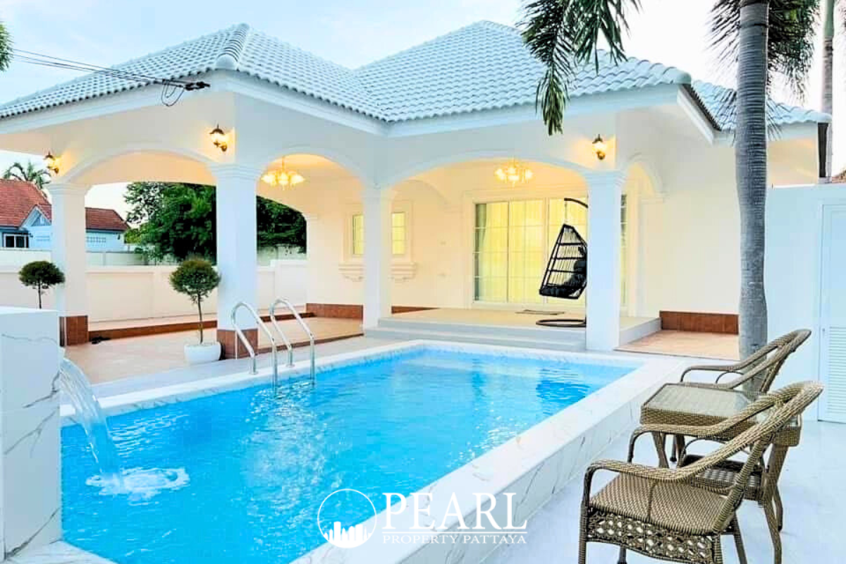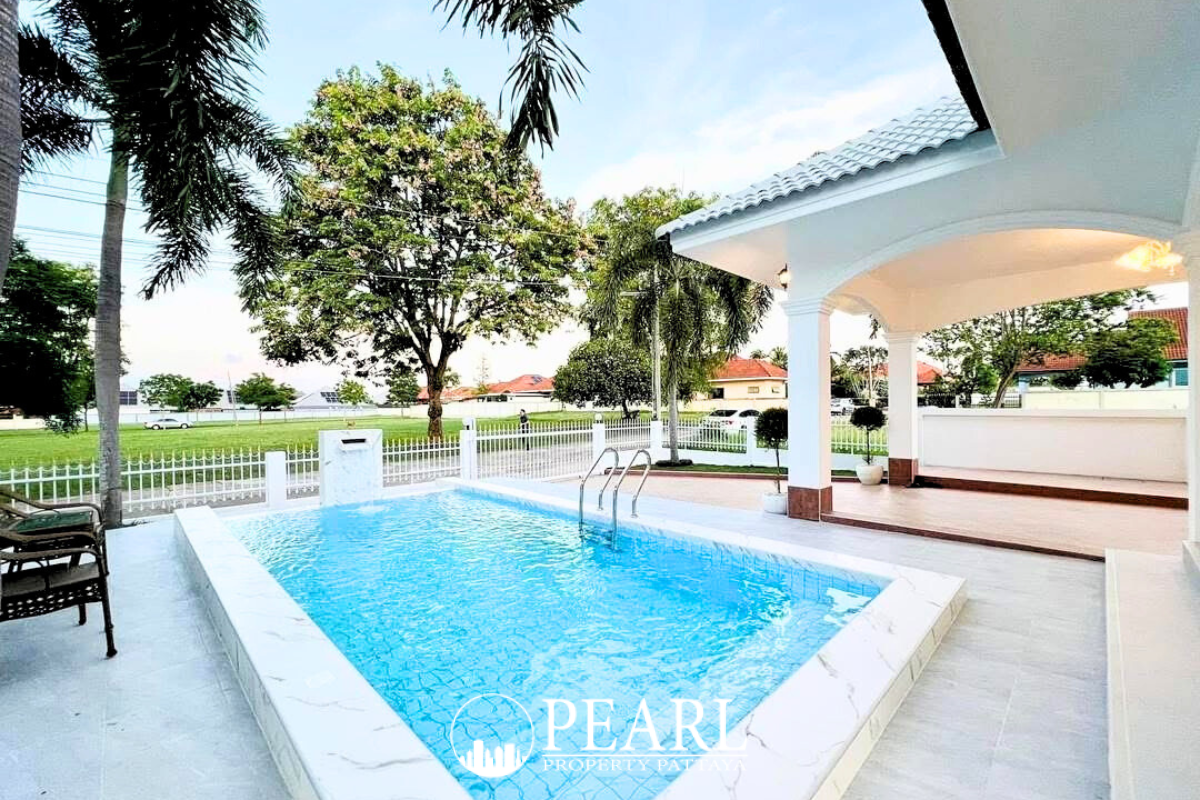 Discover an exceptional opportunity with this charming 3-bedroom, 2-bathroom house for sale within the serene Mabprachan Garden Resort in East Pattaya. Spanning a generous 420 square meters, this fully furnished residence is meticulously prepared for immediate occupancy, offering a seamless transition into a comfortable and convenient lifestyle. Every detail has been considered, from essential appliances including four air conditioners, a television, washing machine, and refrigerator, to spacious living areas designed for ultimate relaxation and entertaining. The modern kitchen, equipped with quality appliances and ample storage, is a culinary enthusiast's dream, while a well-maintained private garden provides a tranquil outdoor sanctuary for leisure or gardening pursuits. This property boasts a prime location adjacent to the picturesque Mabprachan Lake, offering residents stunning views and a peaceful, idyllic environment. Enjoy the perfect balance of tranquility and accessibility, with Central Pattaya just a convenient 15-minute drive away. The home also benefits from easy connections to major highways, ensuring effortless travel throughout the region. For families, the proximity to international schools is a significant advantage, and golf enthusiasts will appreciate being near some of Pattaya's most renowned golf courses. This residence truly offers a coveted blend of luxury, comfort, and strategic location for discerning international buyers. Priced at ฿8,590,000, it represents a remarkable value in East Pattaya's luxury real estate market.