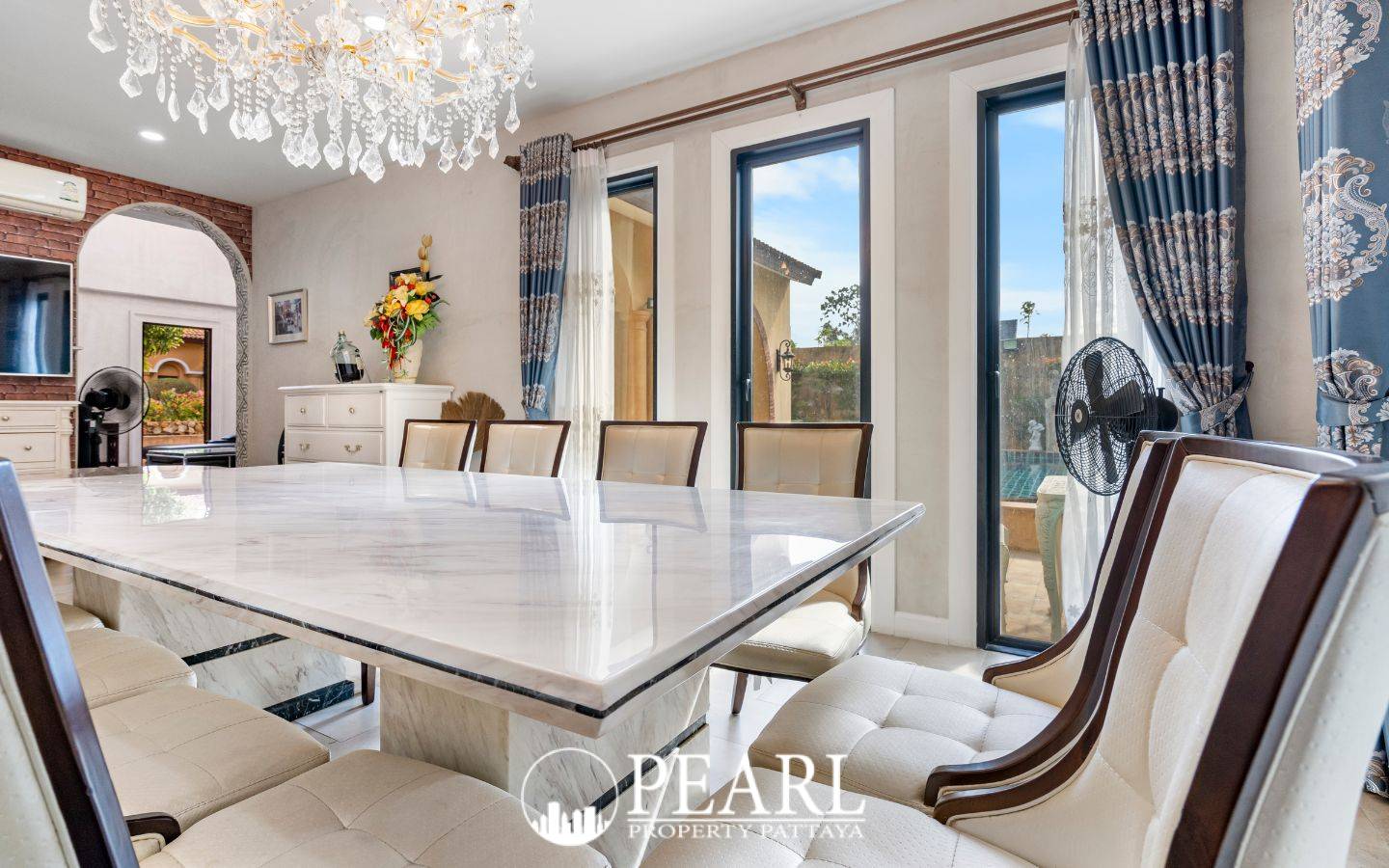 Discover an exquisite Italian-style villa at Nusa Chivani Pattaya, a serene haven nestled in Na Chom Thian. This luxurious 3-bedroom, 4-bathroom residence offers an unparalleled blend of tranquility and sophisticated living, making it an ideal choice for both a dream vacation home or a peaceful retirement. Spanning a generous 428 square meters of land with an estimated 230 square meters of elegant living space, the property boasts a thoughtfully designed layout including a spacious dining area, comfortable living area, a private garden, and convenient covered parking. The villa comes fully fitted and partially furnished, ready for you to personalize and make your own. Nusa Chivani Pattaya is more than just a home; it's a lifestyle. The project is surrounded by a wealth of attractions and amenities, including the world-renowned Nong Nooch Tropical Garden, Cartoon Network Water Park, Mimosa Pattaya, and the vibrant Pattaya Floating Market. Educational institutions are also within easy reach. Residents benefit from an extensive array of on-site facilities designed for comfort and well-being, including a luxurious clubhouse, a refreshing saltwater swimming pool, and healthy food restaurants. For peace of mind, the community offers special medical services with a team of specialists, dedicated elderly care staff, and 24-hour emergency medical services. Its prime location near Sukhumvit Road ensures effortless travel, connecting you seamlessly to all your desired destinations. This exceptional property is available for sale under Thai Name ownership.