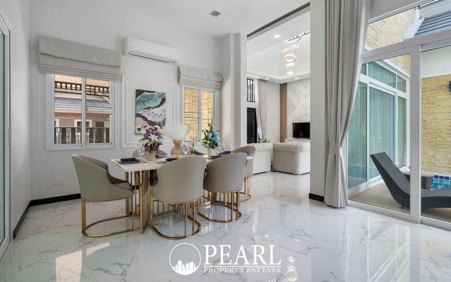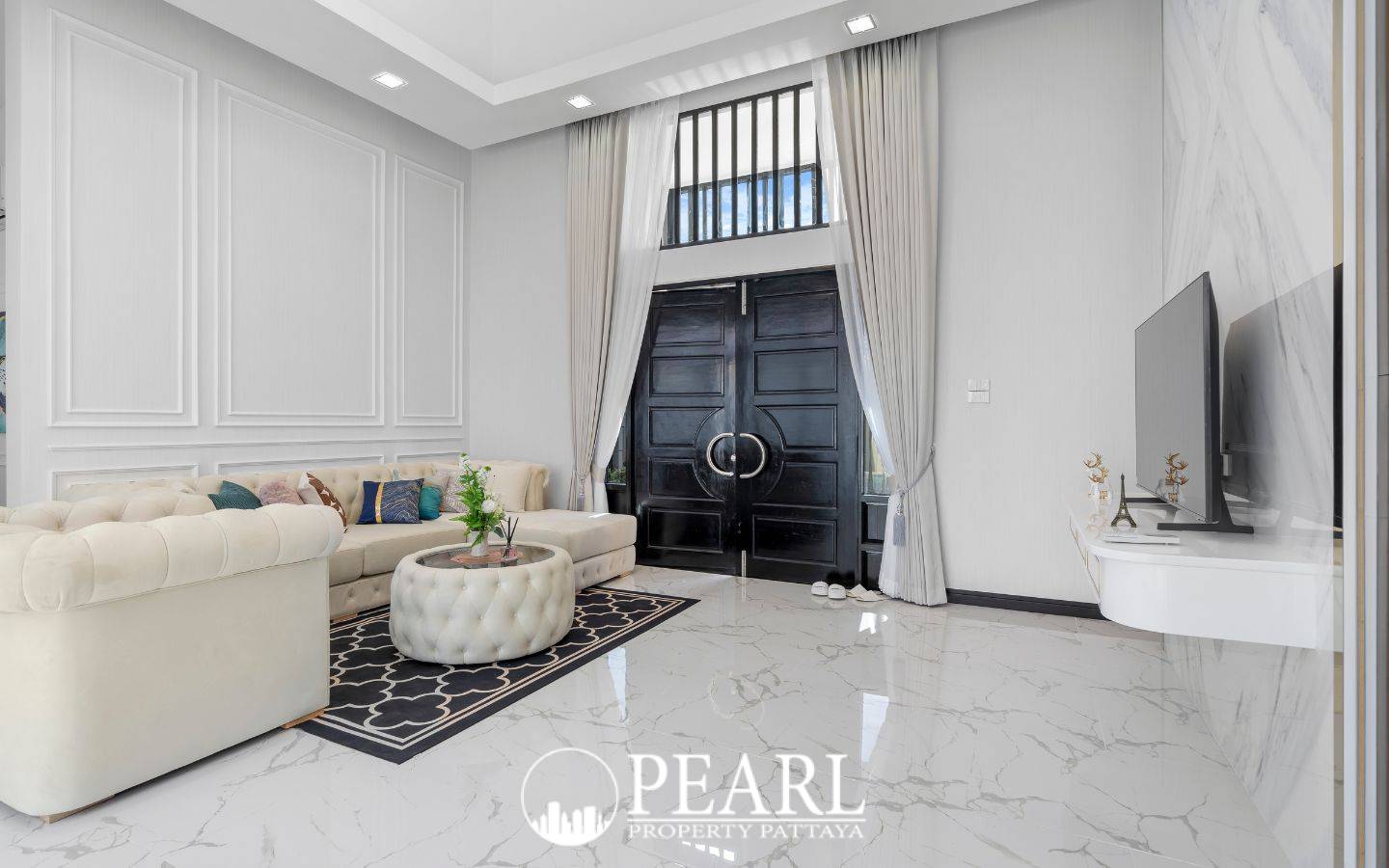 Discover an exceptional opportunity to own a luxurious pool villa within the prestigious Sirisa 16 community, ideally situated on Soi Siam Country Club. This prime location offers the perfect blend of tranquility and convenience, placing you just a 15-minute drive from the bustling Sukhumvit Road and mere moments from the serene beauty of Mabprachan Lake. Residents benefit from easy access to a wealth of local amenities, including convenience stores, reputable schools, vibrant markets, and a diverse array of restaurants, ensuring every necessity and desire is within effortless reach. This exquisite villa, offered fully furnished, presents a sophisticated living experience across 250 square meters of meticulously designed space, set upon a generous 360-square-meter land plot. It features three spacious bedrooms and four well-appointed bathrooms, providing ample comfort and privacy for families or guests. The heart of the home is a grand living room, distinguished by its impressive high ceilings, creating an airy and expansive atmosphere. Culinary enthusiasts will appreciate the modern European-style kitchen, fully equipped with contemporary appliances, complemented by a dedicated dining area perfect for entertaining. Beyond the interiors, the property extends its appeal with practical and leisure amenities. A private car parking space ensures convenience, while the compact swimming pool, complete with a dedicated sunbathing area, offers an intimate oasis for relaxation and enjoyment. This Sirisa 16 villa represents an outstanding investment for those seeking a premium lifestyle in Pattaya, combining elegant design, modern comforts, and an enviable location for a price of ฿10,990,000.