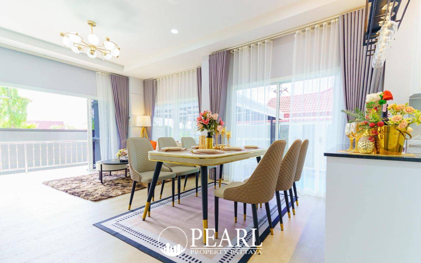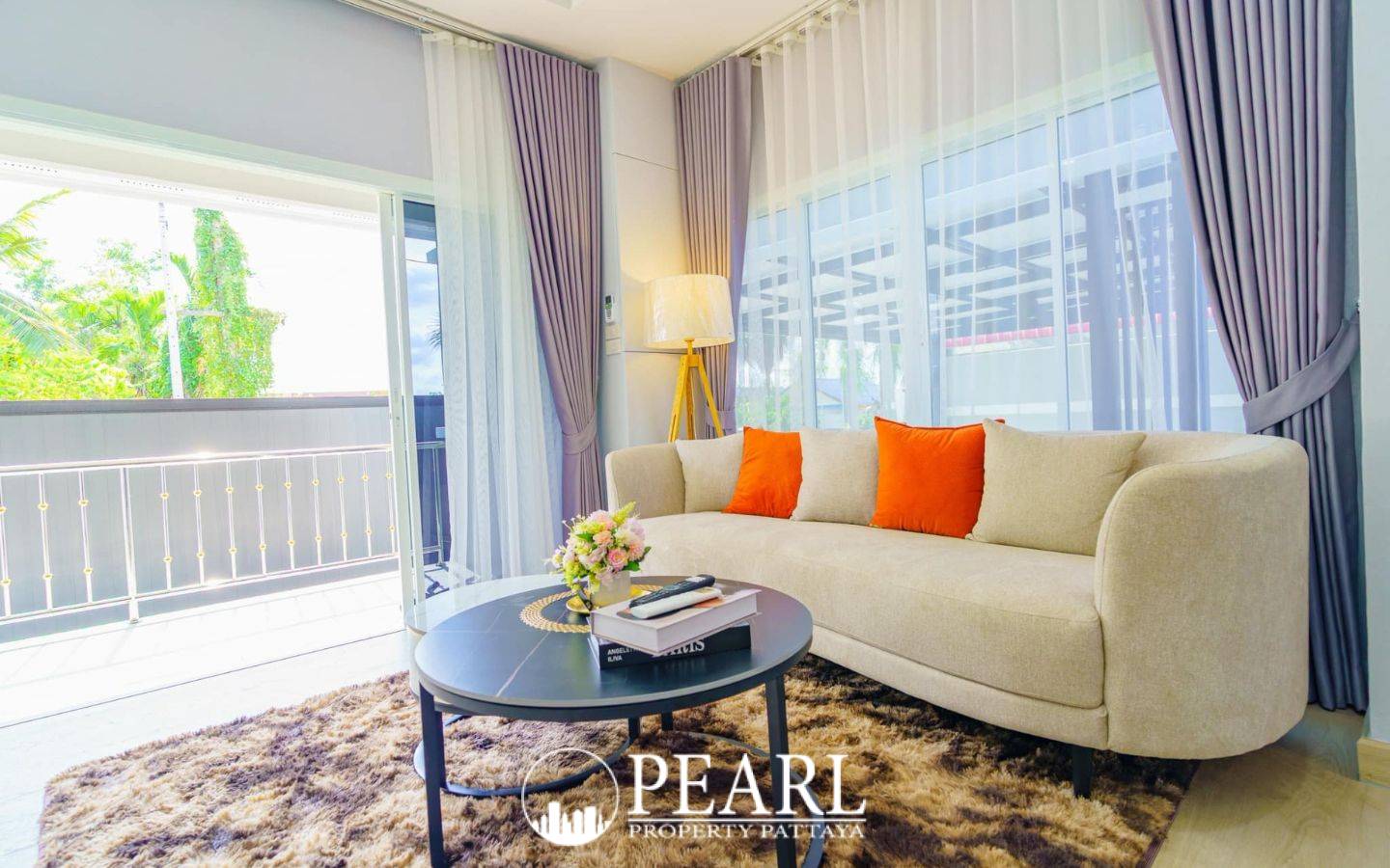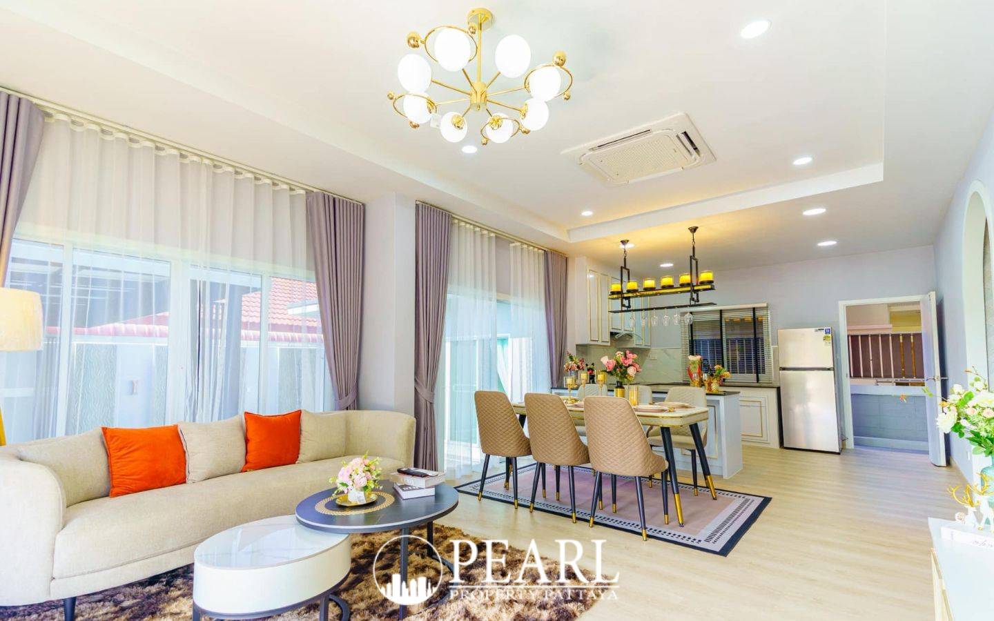 Pearl Property Pattaya is proud to present this luxurious modern pool villa, perfectly situated in the desirable Huai Yai area. This exquisite corner unit offers the ultimate blend of privacy, sophisticated design, and convenient access to all essential amenities. Boasting 3 spacious bedrooms and 3 well-appointed bathrooms, this home provides ample space for comfortable living. The property spans a generous 260 square meters, meticulously designed with high-quality finishes throughout, embodying modern luxury. Step into your private oasis featuring a refreshing swimming pool, ideal for relaxation and entertaining. The villa also includes private parking for two cars, ensuring both security and convenience. Its prime location directly on the main road in Huai Yai offers seamless connectivity to major routes, while being surrounded by vibrant local markets, shops, and essential services. This move-in ready residence comes complete with elegant built-in furniture and a full set of electrical appliances, enhancing your daily comfort and convenience. Offered at an exceptional price of 6,990,000 THB, with ownership transfer and taxes split 50:50, this stunning property represents an outstanding opportunity for discerning international buyers and renters. Contact Pearl Property Pattaya today to arrange a private viewing.