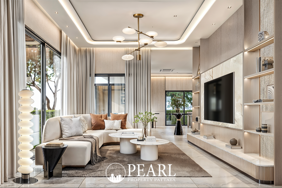 Discover unparalleled luxury at The Palm Pattaya Chaiyapornvitee 25, where the exquisite Type A "Marena" Villa awaits its discerning new owner. This magnificent 3-bedroom, 4-bathroom house offers a generous 225 square meters of living space, meticulously designed for sophisticated comfort and effortless entertaining. Priced at ฿8,290,000, this property represents an exceptional opportunity to own a premium residence in one of Pattaya's most sought-after locations. Step inside to find a spacious living area, perfect for daily relaxation and creating cherished memories. The villa boasts a versatile multipurpose area, ready to adapt to your unique lifestyle needs, whether it's a home office, a fitness space, or a creative studio. Culinary enthusiasts will appreciate the fully-equipped kitchen, complemented by a separate pantry and a stylish bar, making meal preparation and entertaining a delight. Outside, the property seamlessly blends indoor comfort with outdoor grace, providing an ideal setting for hosting gatherings or enjoying tranquil moments amidst the tropical ambiance. With ample parking for three cars, convenience is paramount. Nestled on Chaiyapornvitee 25, this villa offers the best of both worlds: peaceful seclusion combined with immediate access to Pattaya's vibrant offerings. You'll find renowned international schools, a wide selection of shopping malls, and top-tier healthcare facilities just moments away, ensuring all your daily needs are met with ease. Enjoy quick and smooth connectivity to key city areas, making everyday travel effortless and efficient. The Palm Pattaya provides an idyllic backdrop for a life of luxury, convenience, and tranquility.