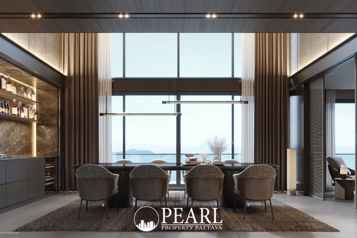 Discover unparalleled beachfront luxury with this exquisite duplex penthouse at The Panora Estuaria, meticulously crafted for the discerning international buyer. This stunning residence offers the ultimate in relaxed coastal living, perfectly blending superior comfort with breathtaking natural beauty. Spanning an impressive 282.58 square meters (approximately 3,040 square feet) across the 5th and 6th floors of an exclusive eight-story building, this four-bedroom, five-bathroom penthouse provides expansive living spaces designed for both grand entertaining and intimate relaxation. Nestled in the tranquil and upscale Baan Amphur / Na Jomtien beachfront area of Pattaya, this property boasts direct beach access and uninterrupted sea views, with no roads separating you from the pristine shoreline. Imagine waking to the gentle sound of waves, enjoying a refreshing dip in your private sky pool, and then strolling directly from your grounds onto the sandy beach. This serene seaside lifestyle is complemented by convenient access to Pattaya’s vibrant array of restaurants, entertainment options, and essential amenities, ensuring you experience the best of both worlds. This penthouse is more than just a home; it's a sanctuary where every detail contributes to an elevated coastal experience. Envision enjoying sunset drinks on your private terrace, overlooking the vast expanse of the ocean, or simply relishing the peaceful ambiance that defines this prestigious location. Backed by a comprehensive suite of building amenities and services, The Panora Estuaria offers a lifestyle of effortless luxury and convenience, making it an ideal investment for those seeking an exceptional beachfront residence in Pattaya.