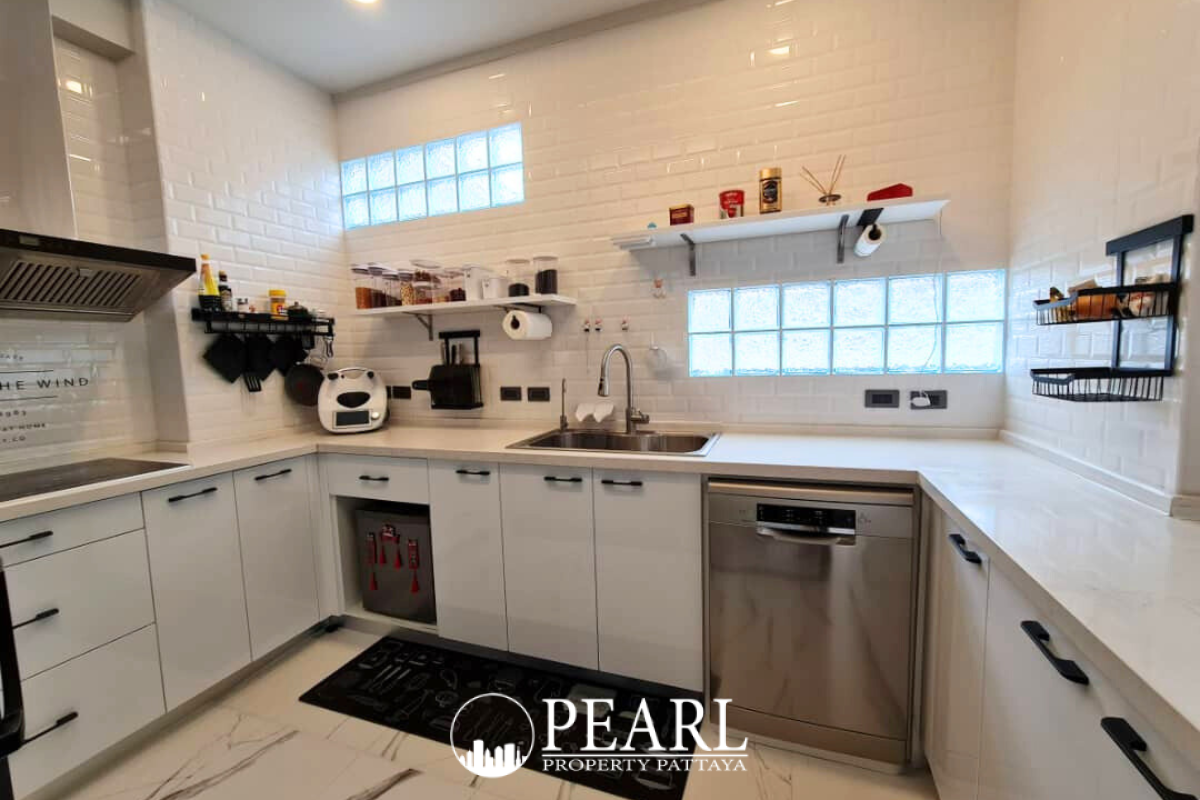 Pearl Property Pattaya is proud to present an exquisite, fully furnished family home available for sale in the highly desirable Patta Prime development. This stunning 4-bedroom, 4-bathroom residence offers a generous 248 square meters of sophisticated living space, meticulously designed for comfort and modern convenience. Step inside to discover premium finishes, a well-appointed European kitchen, and elegant decor throughout, creating an inviting atmosphere for both daily living and entertaining. Outside, a private garden area provides a tranquil retreat, complemented by covered parking for your convenience. Nestled in the peaceful Nong Palai area of East Pattaya, this property boasts an exceptional location that perfectly balances serene suburban living with effortless connectivity. Situated just off Highway 36, it offers unparalleled access to Regent's International School, a mere 800 meters away, simplifying school commutes. Residents will appreciate the rapid access to central Pattaya's vibrant attractions, world-class golf courses, and major motorways, ensuring all your needs are within easy reach. Patta Prime is a prestigious, Art Deco-inspired community completed in 2015 by an award-winning developer, renowned for its quality and family-friendly environment. Residents of this exclusive development enjoy a wealth of resort-style amenities, including a communal swimming pool, a modern fitness center, a private tennis court, and a lush community park. Families will particularly appreciate the dedicated children's playground and the elegant clubhouse, all secured by 24-hour surveillance with CCTV and access control, providing peace of mind. This exceptional home in Patta Prime offers an elevated lifestyle, combining luxury, convenience, and security in one of Pattaya's most sought-after addresses. Contact Pearl Property Pattaya today to arrange a viewing or virtual tour.