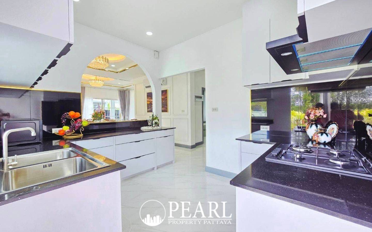 Discover an exceptional opportunity for tranquil living in Baan Suan Suwattana Phase 2 with this expansive four-bedroom private pool villa, exclusively presented by Pearl Property Pattaya. This meticulously maintained single-story residence offers a harmonious blend of comfort, space, and functionality, set within a peaceful community just steps from the vibrant Rairuawanasin Market. Boasting a generous land size of 588 square meters and an impressive 320 square meters of usable living space, this property is designed for those who appreciate both privacy and convenience. The villa features four well-appointed bedrooms and five modern bathrooms, ensuring ample space and comfort for residents and guests alike. Culinary enthusiasts will appreciate the separate European-style kitchen, equipped with a built-in oven, refrigerator, stove, and extractor hood. Outside, a refreshing 7 x 3.5 meter saltwater swimming pool, complete with a charming waterfall feature, provides the perfect oasis for relaxation and entertainment. Practical amenities include five air-conditioners, two water tanks, a 350W water pump, and parking for one vehicle inside, with additional space for two cars in front of the house. Strategically located, this home offers unparalleled access to local conveniences. Situated directly behind Rairuawanasin Market and just 100 meters from E-Toh College, residents will enjoy easy access to fresh produce, local shops, and educational facilities. This peaceful yet highly accessible area provides a desirable lifestyle for families seeking a well-maintained pool villa that combines spacious living with proximity to essential community amenities and city roads. Offered under a Thai company name, this property presents a seamless acquisition for international buyers. Contact Pearl Property Pattaya today to arrange a private viewing and experience the allure of this remarkable home.