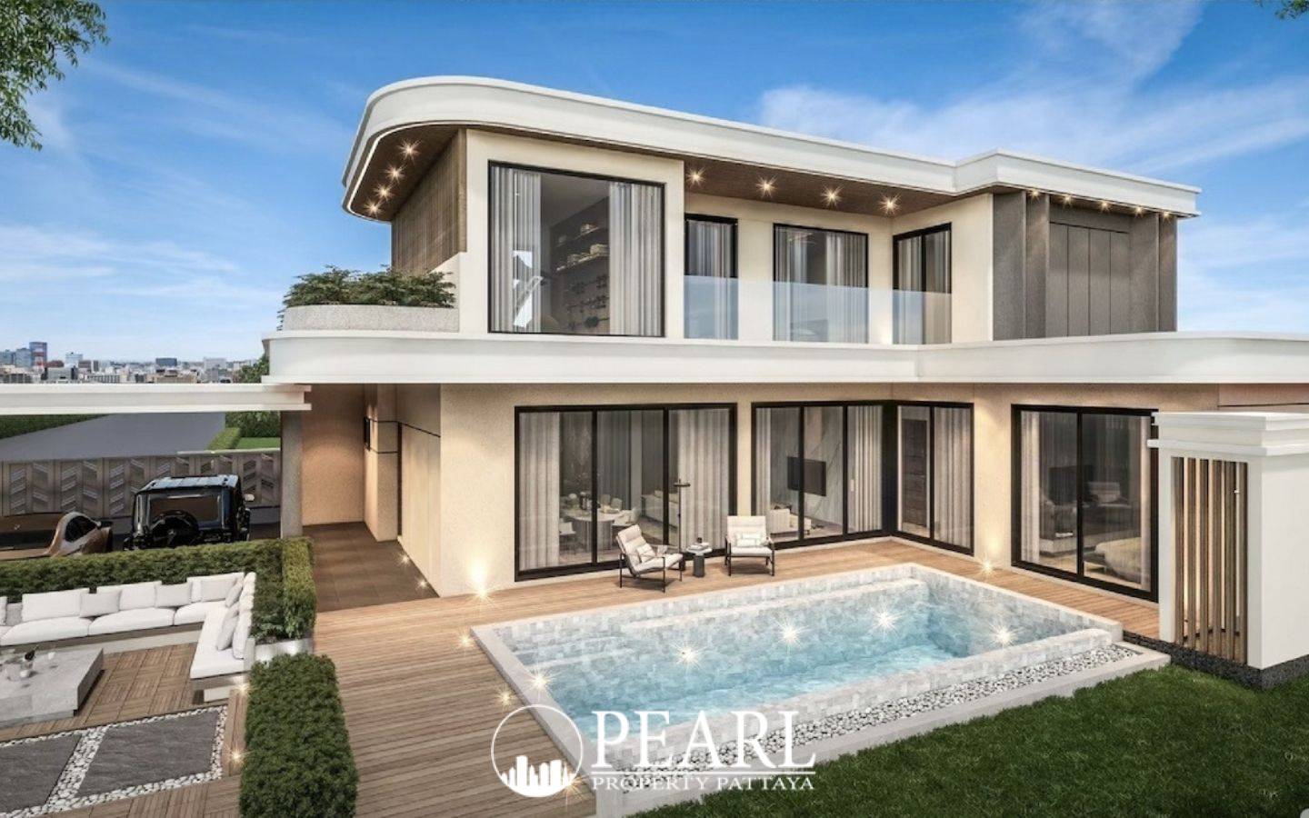 Pearl Property Pattaya is proud to present "Villa A" at Cherin Pattaya, an exquisite modern luxury home designed for discerning families seeking tranquility, privacy, and enduring style. Nestled within a serene residential enclave, Cherin Pattaya offers an exclusive collection of private residences, each meticulously crafted with a sophisticated blend of Modern Contemporary and Scandinavian design principles. Villa A is perfectly suited for mid-sized families who prioritize expansive living, exceptional functionality, and a harmonious connection with nature. This impressive two-story residence boasts a generous usable area of 418 square meters, providing ample space for comfortable living and entertaining. The thoughtful layouts and warm architectural aesthetics create an inviting atmosphere that seamlessly balances comfort with sophistication. Key features include four spacious bedrooms, four well-appointed bathrooms, and two distinct living rooms, offering versatile spaces for relaxation and social gatherings. The European-style kitchen is a chef's delight, while dual walk-in closets provide abundant storage. Outside, a private swimming pool offers a refreshing oasis, complemented by a dedicated fitness room and a charming second-floor garden terrace. Covered parking for three vehicles ensures convenience and security. Cherin Pattaya enjoys a prime location, offering the best of both worlds: a peaceful, nature-surrounded neighborhood with exceptional accessibility. Residents benefit from a mere 10-minute drive to prestigious educational institutions such as Regents International School and Mooltripakdee International School. Furthermore, easy access to central Pattaya ensures all lifestyle conveniences, including world-class dining, shopping, and entertainment, are just moments away. Priced at 29,900,000 THB, Villa A at Cherin Pattaya is more than just a house; it is a meticulously designed sanctuary for sophisticated family living. Contact Pearl Property Pattaya today to arrange a private viewing and discover this exclusive opportunity.