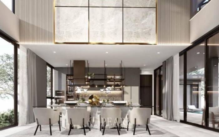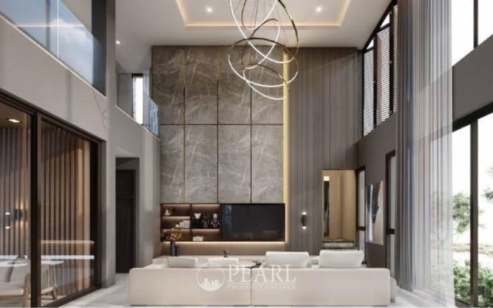 Discover unparalleled luxury in this newly constructed, two-story villa, perfectly situated in the desirable East Pattaya area. This architectural masterpiece offers a sophisticated blend of modern design and elegant finishes, providing an exceptional living experience. Boasting four spacious bedrooms and five well-appointed bathrooms, this expansive residence spans approximately 589 square meters of living space on a generous land plot of 140-145 square wah (approximately 560-580 square meters). Beyond its impressive interiors, this villa offers a private oasis with its own swimming pool and beautifully landscaped garden, ideal for relaxation and entertaining. Its prime location near Mabprachan Lake provides a serene environment while ensuring excellent connectivity. Residents will enjoy convenient access to a wide array of local shops, exquisite restaurants, reputable schools, and modern shopping centers. Furthermore, the property benefits from easy access to major road networks, facilitating effortless travel throughout Pattaya and beyond. This property represents a unique opportunity for discerning international buyers seeking a high-end lifestyle near Mabprachan Lake. Each detail has been meticulously crafted to offer a harmonious blend of luxury, comfort, and natural beauty, making it an ideal choice for a permanent residence or a lavish holiday home. Experience the epitome of sophisticated living with Pearl Property Pattaya.