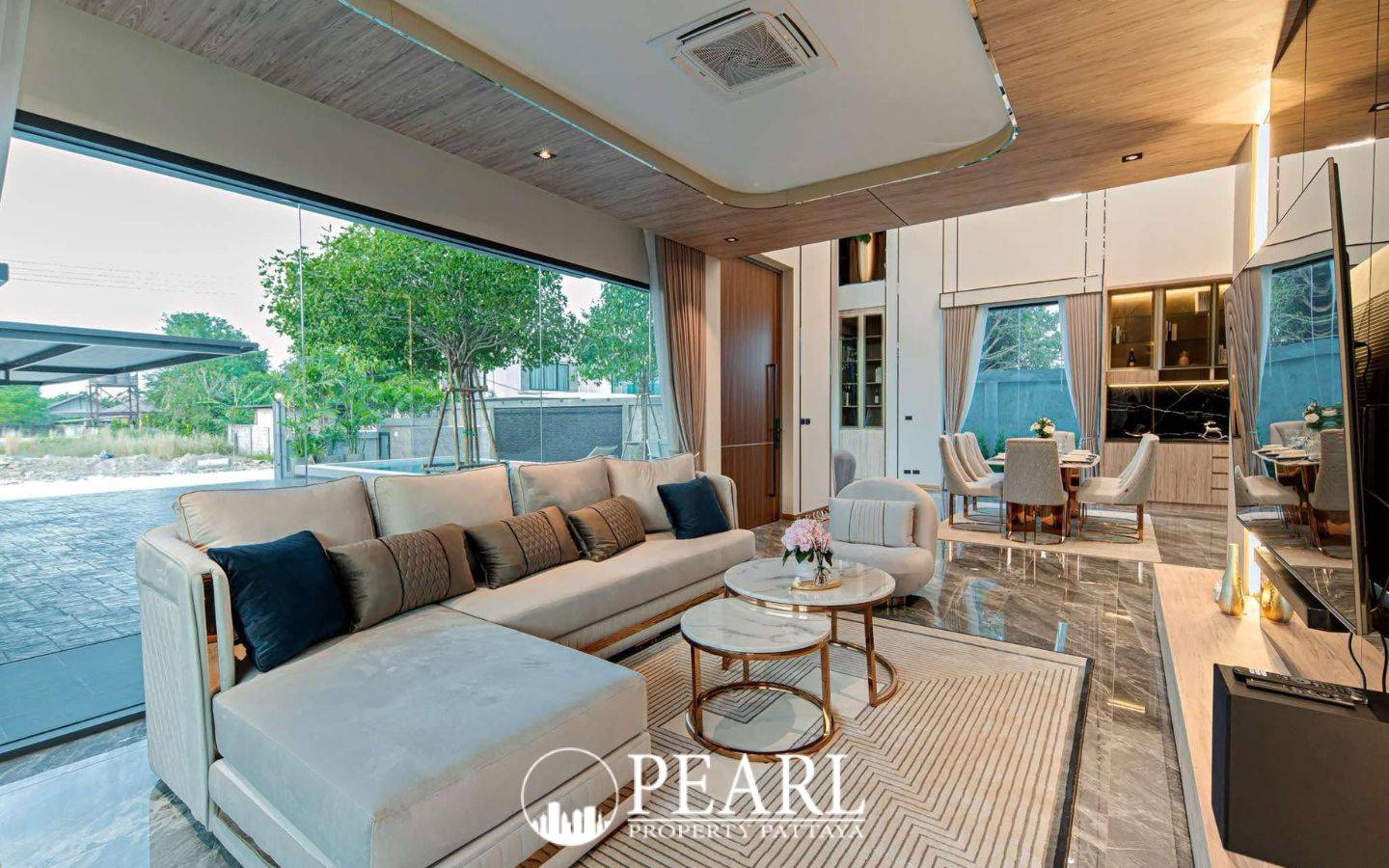 Pearl Property Pattaya is delighted to present an exquisite modern luxury pool villa, perfectly situated in the serene and sought-after Huai Yai area. This exceptional residence offers an unparalleled blend of sophisticated design and practical functionality, ideal for discerning international buyers seeking a premium lifestyle in Pattaya. Boasting a generous 528 square meters of meticulously designed living space, this expansive villa features four luxurious bedrooms and six well-appointed bathrooms, ensuring ample comfort and privacy for residents and guests alike. The outdoor oasis is highlighted by a grand private swimming pool, complete with a dedicated children's area, a relaxing Jacuzzi, and a captivating natural stone waterfall. Culinary enthusiasts will appreciate the dual kitchen setup, featuring a stylish European-style kitchen alongside a minimalist Thai kitchen, perfect for diverse cooking needs. Throughout the home, built-in luxury furnishings and elegant wallpaper finishes create an atmosphere of refined elegance. For ultimate relaxation, a private sauna offers a spa-like retreat within the comfort of your own home. This smart home is equipped with cutting-edge technology, including energy-efficient solar panels and a convenient EV charging station, reflecting a commitment to modern living. A comprehensive CCTV security system provides peace of mind, while covered parking for up to four vehicles ensures both convenience and protection. Located in the tranquil yet accessible neighborhood of Huai Yai, this villa offers the perfect balance of peaceful residential living with easy access to Pattaya's vibrant attractions, world-class golf courses, and beautiful beaches. Discover the pinnacle of modern luxury living in Pattaya by scheduling your private viewing today.