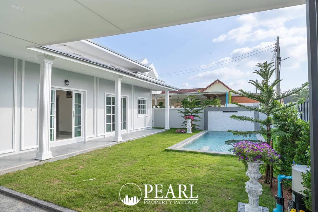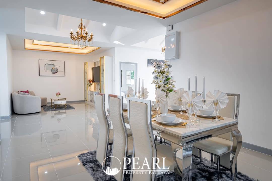 Pearl Property Pattaya is delighted to present an exquisite corner house for sale in the tranquil Natheekarn Park View, nestled within the desirable Mabprachan area. This newly renovated residence, spanning a generous 460 square meters of land with a comfortable 220 square meters of living space, offers a seamless blend of modern comfort and sophisticated design. Fully furnished and move-in ready, this home is perfect for international buyers seeking a luxurious and convenient lifestyle in Pattaya. Step inside to discover a bright and airy interior, where stylish finishes and thoughtful design create an inviting atmosphere. The open-plan living and dining areas flow effortlessly, providing an ideal setting for both intimate family moments and entertaining guests. With four spacious bedrooms and four well-appointed bathrooms, this property ensures ample privacy and comfort for all residents. The master suite, in particular, offers a serene sanctuary for relaxation. Beyond the elegant interiors, the expansive corner plot provides enhanced privacy and presents a wonderful opportunity to cultivate your own private garden oasis. The Mabprachan locale is renowned for its peaceful ambiance, its close proximity to the picturesque Mabprachan Lake, and excellent accessibility to leading international schools, diverse dining establishments, and championship golf courses. Offered at 7,900,000 Thai Baht, this property represents exceptional value for its prime location and superior quality. Ownership is held under a Thai name, with transfer fees split 50/50. Contact Pearl Property Pattaya today to arrange a private viewing and experience the allure of this magnificent home.