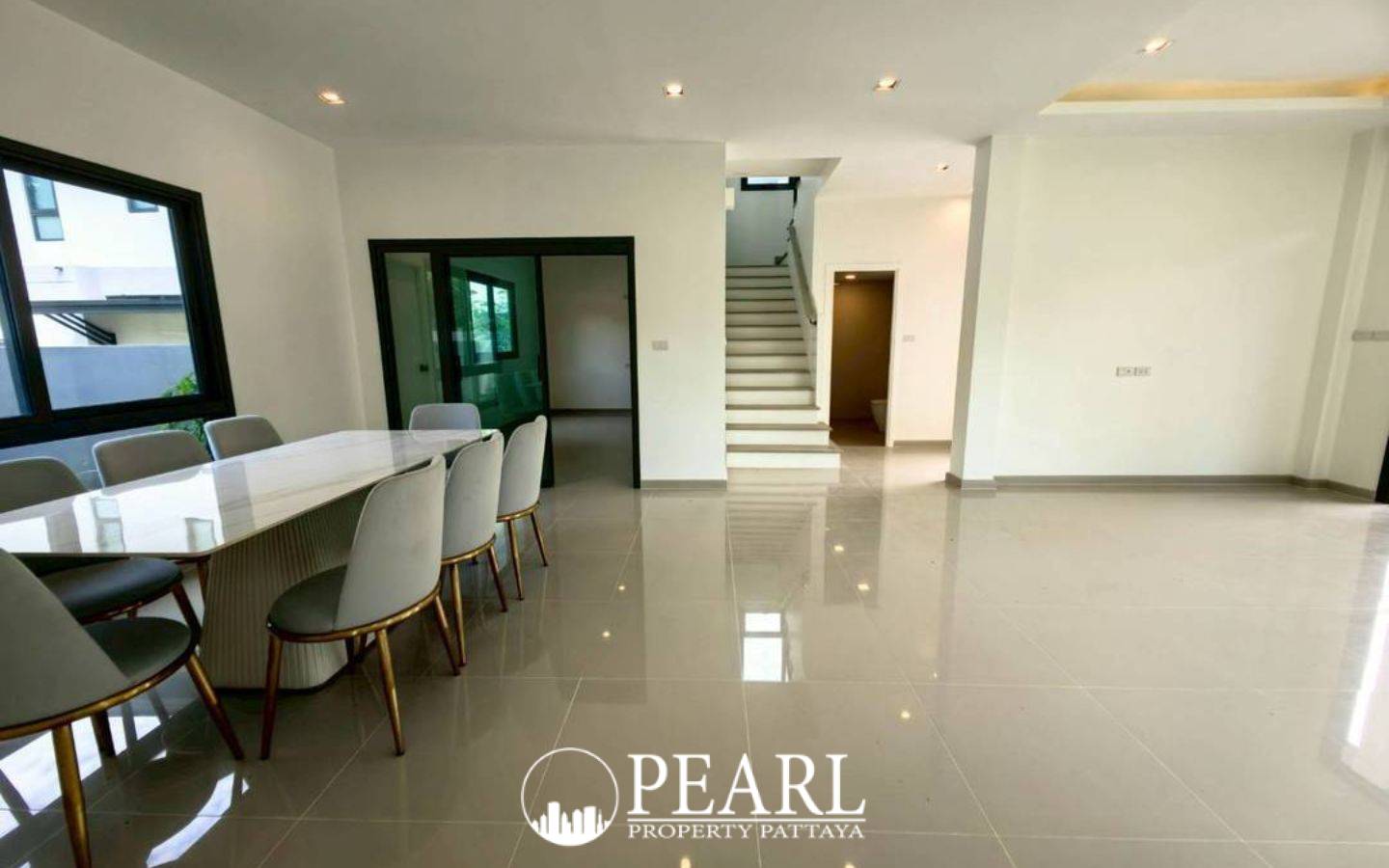 Pearl Property Pattaya is proud to present a rare opportunity to acquire a beautifully maintained corner villa within the highly sought-after Patta Element project. This exquisite 4-bedroom, 3-bathroom home, set on a generous 370 square meter land plot, offers an impressive 187 square meters of usable living space. Designed for both comfort and functionality, this modern residence provides an ideal sanctuary for family living or a discerning long-term investment. Upon entering, the first floor reveals a spacious living room, a well-appointed kitchen, and a versatile study that can easily serve as a guest bedroom, complemented by a convenient bathroom. Ascending to the second floor, you will find two comfortable standard bedrooms, a shared bathroom, and a luxurious master bedroom complete with its own en-suite bathroom. This thoughtful layout ensures privacy and convenience for all residents. Located within a secure community, Patta Element offers excellent accessibility and modern infrastructure, making it a truly move-in-ready family home. Priced at 9,500,000 THB with company ownership and a 50/50 split on transfer fees, this property represents exceptional value in a prime Pattaya location. Contact Pearl Property Pattaya today to schedule a private viewing and discover the unparalleled lifestyle awaiting you at Patta Element.