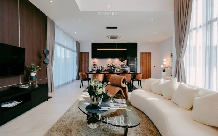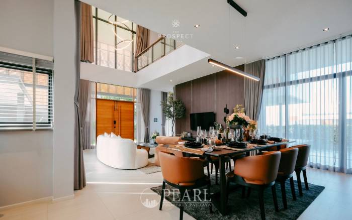 Discover unparalleled luxury and sophistication at The Prospect with this exquisite 4-bedroom villa, Onyx, designed to perfectly complement your opulent lifestyle. Spanning an impressive 660 square meters, this residence offers an expansive sanctuary where every moment is elevated. The generous and thoughtfully designed layout fosters an atmosphere of freedom and self-expression, allowing you to truly appreciate the finer things in life. This magnificent villa boasts four spacious bedrooms and five elegant bathrooms, providing ample comfort and privacy for residents and guests alike. Imagine unwinding in your private outdoor Jacuzzi, savoring a breathtaking sunset with loved ones – a true privilege that defines the essence of luxury living at Onyx. Priced at ฿39,900,000, this property represents a unique opportunity to own a prestigious home in one of Pattaya's most sought-after locations. Onyx at The Prospect is more than just a home; it's a statement of success and a haven of tranquility. Experience the perfect blend of sumptuous design, expansive living spaces, and exclusive amenities, all crafted to enhance your quality of life. This villa offers an exceptional lifestyle for discerning international buyers seeking a premium residence in Pattaya.