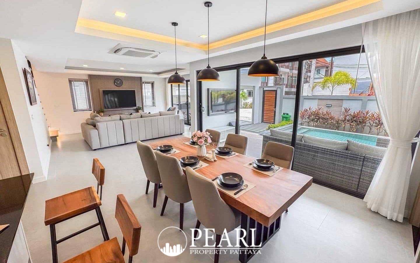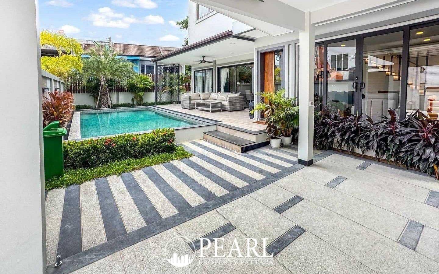 Discover unparalleled luxury at Zensiri Midtown Villas, an exclusive collection of 26 pool villas meticulously crafted by ESS Developments in the vibrant heart of Central Pattaya. This stunning 4-bedroom, 5-bathroom villa, boasting a generous 307 square meters of living space, represents the pinnacle of sophisticated urban living. Perfectly situated on Soi 22 Third Road, just 300 meters from South Pattaya Road, residents enjoy effortless access to a plethora of amenities, including supermarkets, renowned restaurants, and lively bars, all within walking distance. The iconic Pattaya Beach is also a mere 15-minute stroll away, offering the perfect blend of convenience and coastal charm. Despite its central location, Zensiri Midtown Villas provides a serene and tranquil sanctuary, offering quiet respite just moments from the city's bustling energy. The development itself is designed to elevate your lifestyle, featuring wide internal roads, discreet underground utilities, and beautifully landscaped tropical gardens. Residents will indulge in an array of world-class communal facilities, including an expansive 20-meter swimming pool, a rejuvenating 12-person jacuzzi, a dedicated children's pool, and comfortable covered seating areas. A spacious, top-of-the-range fitness center, sun lounger area, and a dedicated meeting room further enhance the metropolitan lifestyle offered here. This particular Grande villa, one of only six in the project, distinguishes itself with its larger land plot and expansive private swimming pool, all enveloped by lush tropical gardens. Every detail has been considered to ensure the highest quality, low maintenance, and increased sustainability. Only the finest materials available on the market have been selected, guaranteeing that this villa not only delivers the luxury you expect but also provides enduring satisfaction and an exceptional lifestyle for years to come. Priced at ฿21,900,000, this is an exceptional opportunity to own a prestigious property in one of Pattaya's most sought-after locations.