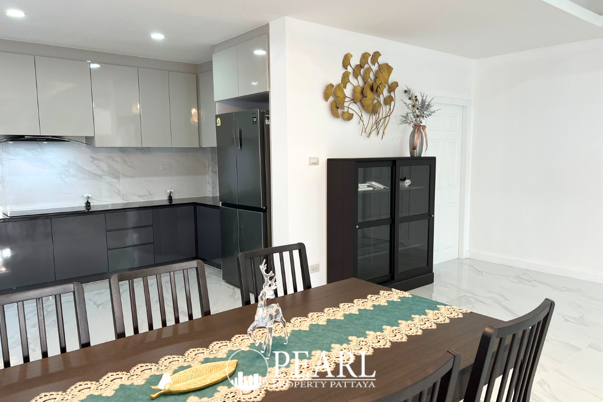 Discover an exceptional opportunity within the serene Eakmongkol Village, Chaiyapruek 2, with this expansive 5-bedroom pool villa. Perfectly situated for families or discerning investors, this fully furnished residence offers a harmonious blend of luxurious comfort and unparalleled convenience in one of Pattaya's most sought-after and accessible neighborhoods. Spanning a generous 324 square meters, the property boasts five well-appointed bedrooms and six modern bathrooms, ensuring ample space for both personal privacy and sophisticated entertaining. Step into a world of relaxation with your own private swimming pool, an idyllic retreat for unwinding on warm afternoons. The interior is meticulously furnished with elegant taste, presenting a turnkey solution for immediate occupancy or a lucrative rental venture. Its prime location in Chaiyapruek provides effortless access to the pristine shores of Jomtien Beach and the main arterial Sukhumvit Road, placing a diverse array of shops, exquisite restaurants, and essential amenities mere minutes from your doorstep. This secure Eakmongkol Village property represents a truly remarkable offering for those seeking an elevated lifestyle in Pattaya.