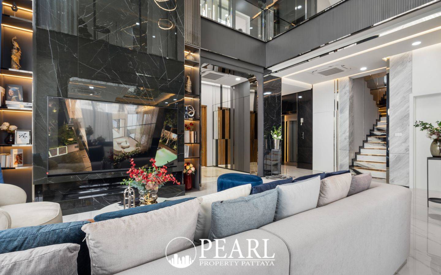 Discover unparalleled luxury and tranquility at Harmony Hills Villas Pattaya, a prestigious development nestled in the serene Huai Yai area. This exquisite 5-bedroom, 7-bathroom house, spanning a generous 580 square meters, offers an exceptional living experience designed for the discerning international buyer. Enjoy the perfect blend of elegant design, ultimate privacy, and convenient access to all that Pattaya has to offer, making this an outstanding investment opportunity. Strategically located, Harmony Hills Villas Pattaya is just a 10-minute drive from Pattaya's pristine beaches, allowing for effortless enjoyment of the coastal lifestyle. While offering a peaceful retreat, the vibrant energy of Pattaya is always within reach, with Pattaya Old Town Walking Street approximately 4.7 km away. Residents will appreciate easy access to a diverse array of dining options, world-class shopping centers, and exciting leisure activities, ensuring every convenience is at your fingertips. This off-plan villa, scheduled for completion in December 2024, is meticulously designed to offer spacious living areas, breathtaking pool and garden views, and the ultimate in private amenities. Indulge in your own private swimming pool, enjoy the convenience of a private lift, and relax in your expansive private garden. The development prioritizes your peace of mind with 24-hour security and CCTV surveillance. Furthermore, Harmony Hills Villas Pattaya warmly welcomes pets of all kinds, making it an ideal sanctuary for animal lovers. Experience the pinnacle of luxurious living in Pattaya with this remarkable property.
