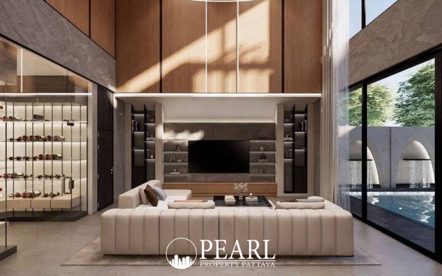 Pearl Property proudly presents Sikharin Pratumnak Hill, an exclusive ultra-luxury pool villa nestled in the heart of Pattaya’s most prestigious hillside neighborhood. This modern contemporary estate occupies a generous 732 square meter plot, boasting an expansive 1,225.90 square meters of usable space. Designed for an elite lifestyle, the villa offers unparalleled privacy and sophisticated living with six spacious bedrooms, nine luxurious bathrooms, and secure parking for up to six vehicles. Step inside to discover a striking double-volume lounge, setting a grand tone for the home's sophisticated interior design. This villa seamlessly integrates luxury and technology, equipped with a full Smart Home System for ultimate convenience. Top-tier amenities elevate the living experience, including a private swimming pool with a sun deck, a fully-equipped wine cellar, a dedicated home theater, a sauna, a private gym, and a stunning rooftop terrace. Advanced features such as a digital door lock and a comprehensive security system ensure peace of mind, while premium furnishings and finishes adorn every corner, making this residence ideal for grand entertaining or comfortable multi-generational living. Beyond its opulent interiors, Sikharin Pratumnak Hill offers an exceptional location. Enjoy the convenience of being just 1 kilometer from both Pattaya and Jomtien Beaches, and a mere 2 kilometers from the vibrant Walking Street. Major shopping destinations like Terminal 21 and Central Festival Pattaya are within 3 to 5 kilometers, with Bangkok Hospital Pattaya only 8 kilometers away. For international travel, U-Tapao International Airport is a convenient 40-kilometer drive. This property is more than just a residence; it is a private sanctuary on Pattaya’s upscale Pratumnak Hill, offering an exquisite blend of exclusivity, luxury, and unparalleled convenience.