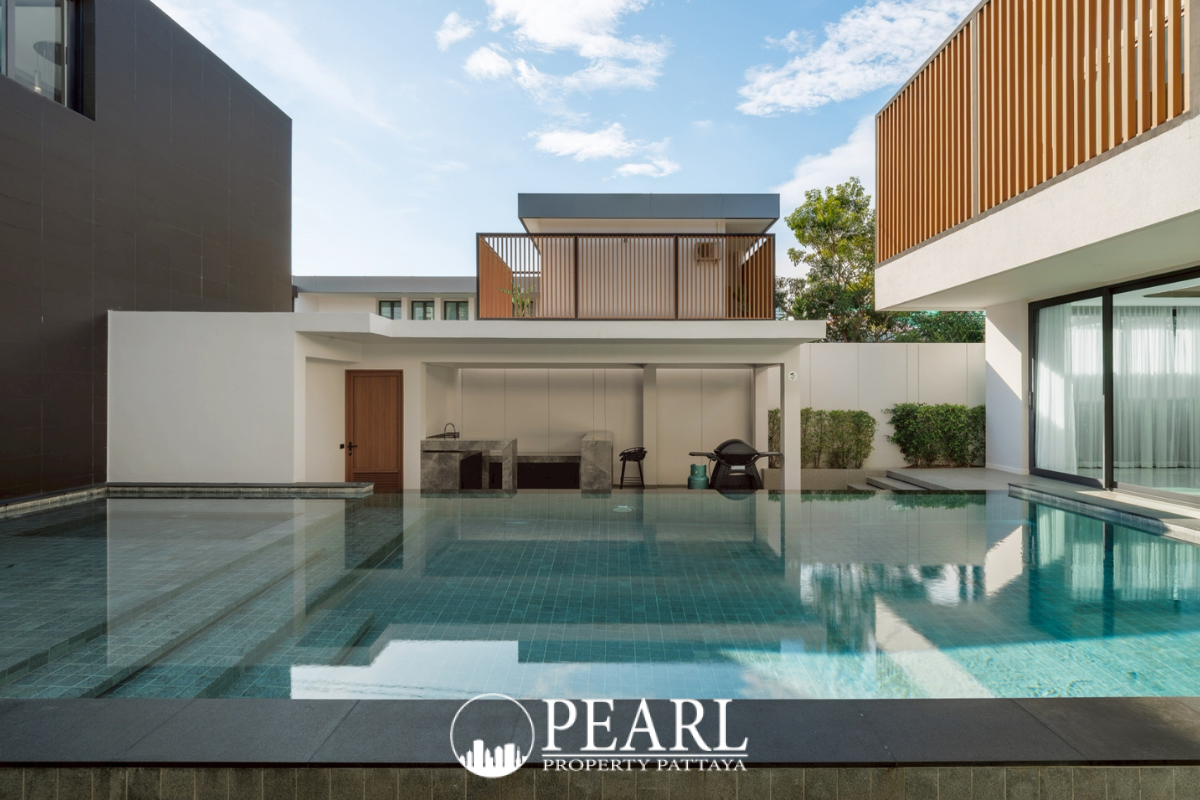 Discover "Jomtien Elegant," an exquisite private villa offering unparalleled luxury in the vibrant heart of Jomtien. This grand two-story residence, set on a generous 1,024 square meter plot, redefines sophisticated coastal living. With 8 spacious bedrooms and 11 opulent bathrooms, including two dedicated maid's rooms, this property is meticulously designed for comfort and privacy. Its prime location places you mere steps from the pristine Jomtien Beach Road and within easy reach of renowned seafood restaurants such as Pu Pen and Lung Sawai, blending serene seclusion with ultimate convenience and contemporary elegance. This exceptional villa boasts an array of premium amenities tailored for a discerning lifestyle. Enjoy the convenience of covered parking for four vehicles, complete with an EV charging station. Maintain your wellness routine in the fully equipped private fitness room, or indulge in cinematic experiences within your dedicated home theater. A unique multipurpose room on the second floor, thoughtfully designed as a Chef's Table space, offers endless possibilities for entertaining. Furthermore, the property is equipped with a state-of-the-art 15 kW solar power system and 3-phase electricity, significantly reducing utility costs by approximately 9,000 Thai Baht per month while promoting sustainable living. "Jomtien Elegant" is more than just a home; it's a lifestyle statement, perfect for luxurious everyday living or an opulent holiday retreat. The villa features seamless indoor-outdoor flow and expansive living areas, all enhanced by smart energy efficiency. Experience unparalleled peace and privacy just moments from the beach, with Pattaya's dynamic dining, entertainment, and leisure attractions readily accessible. This is an extraordinary opportunity to own a prestigious property where every detail has been curated for an elevated living experience.