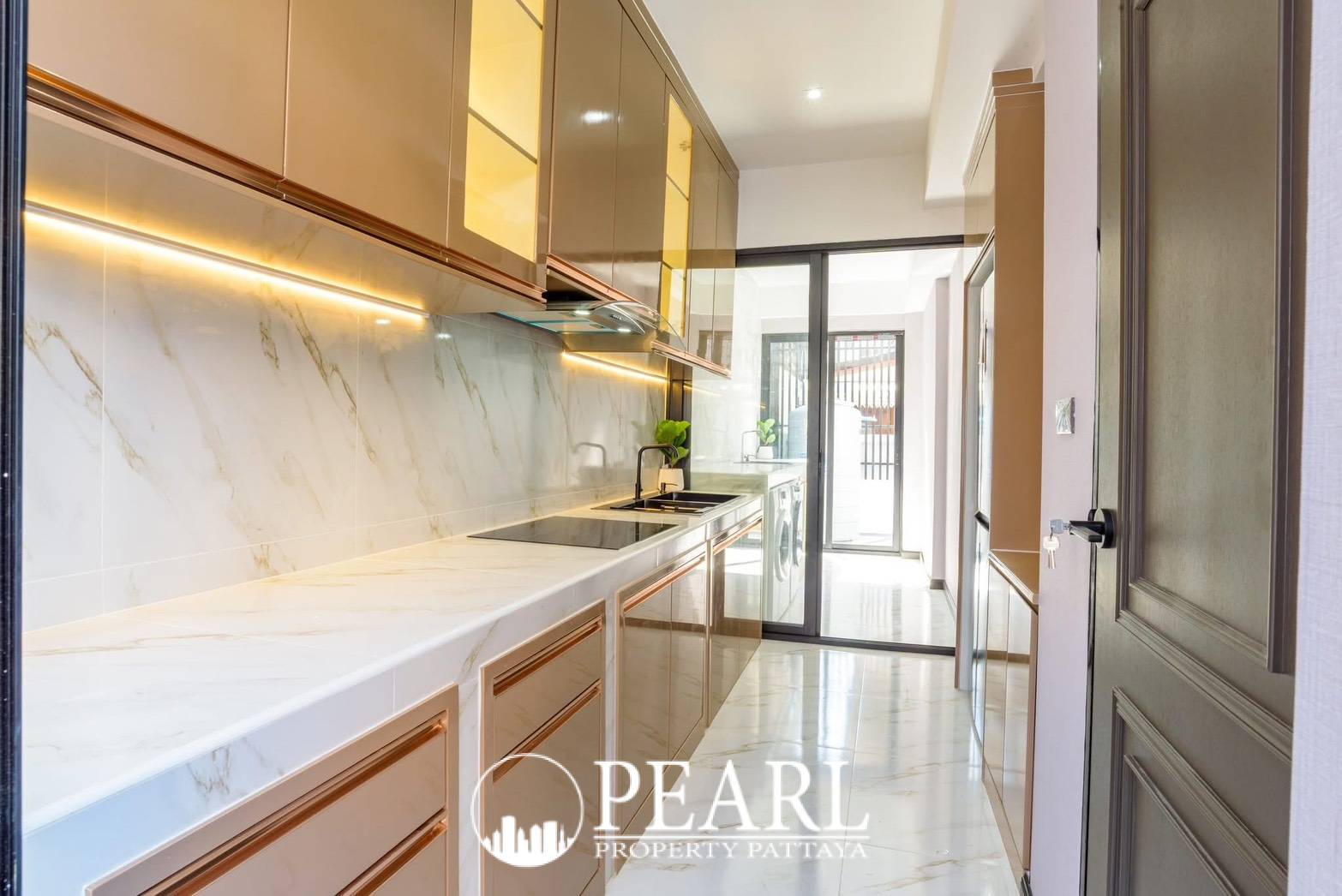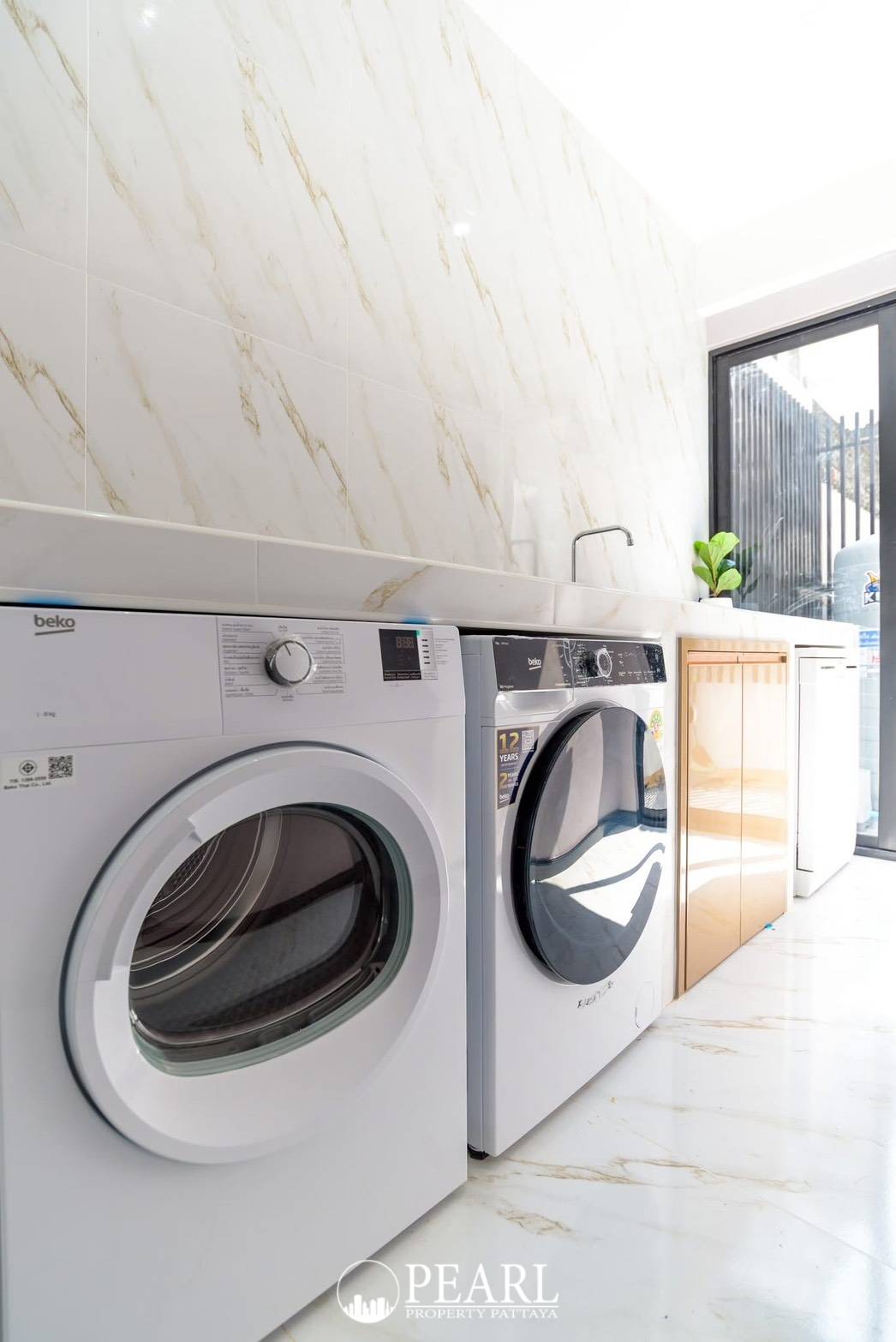 Set on 59 sqw of land with a 320 sqm usable area, this two-storey villa offers a well-planned layout featuring a bright living area, four bedrooms, and three bathrooms. The European kitchen includes a counter bar for casual dining, while the separate Thai kitchen ensures comfortable everyday cooking. A dedicated laundry room adds further convenience for family routines.