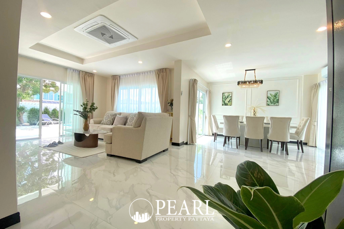 Perfect for families or those seeking generous living space near Jomtien, this two-story villa offers a blend of privacy, comfort, and convenience—just minutes from local markets, international schools, and the beach.