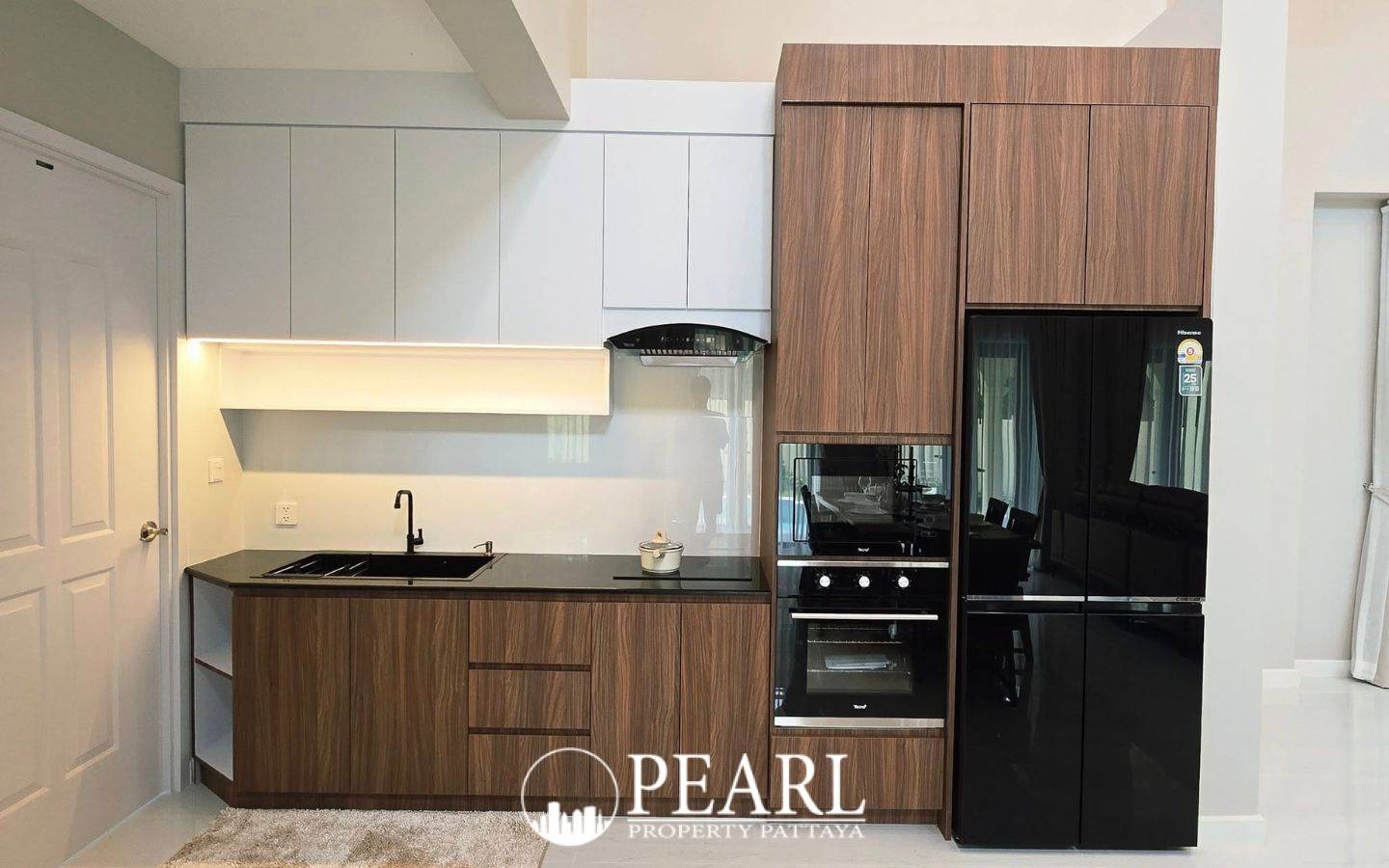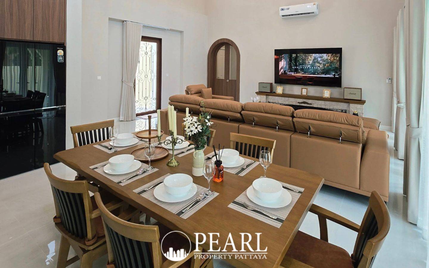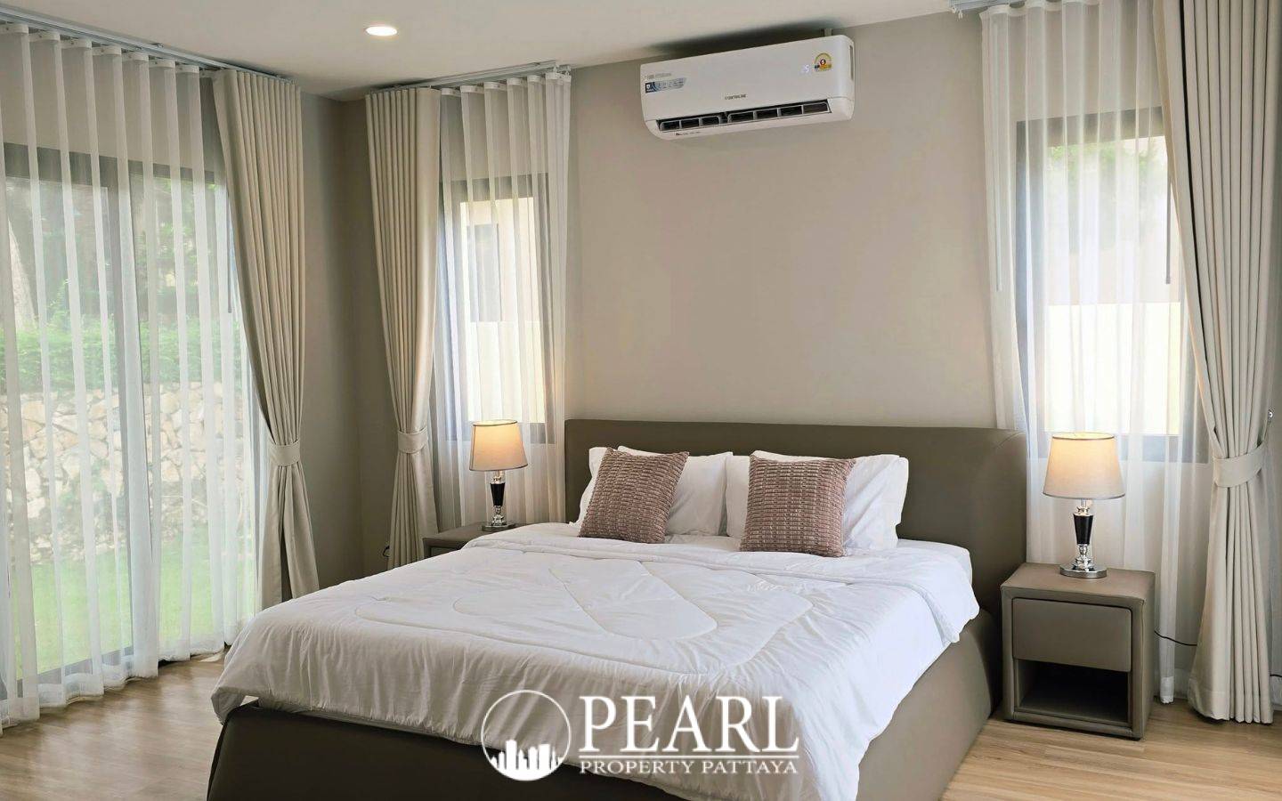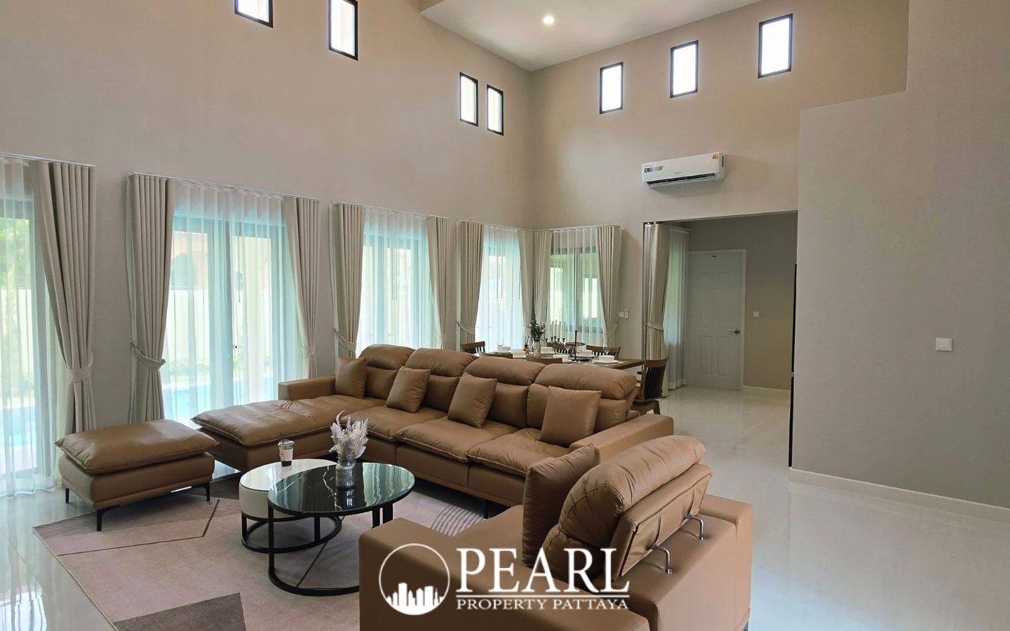 Pearl Property presents this elegant Tuscan-style luxury pool villa in the prestigious Chivani Pool Villa development — surrounded by lush greenery, offering the ambiance of Khao Yai with the convenience of coastal living in Pattaya. Perfectly located right on Sukhumvit Road, just 400 meters from Nong Nooch Tropical Garden and opposite Columbia Pictures Aquaverse Waterpark.