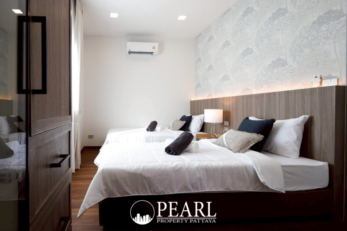 Pearl Property presents this brand-new, fully furnished pool villa in the serene enclave of Spring Town Village, just one minute from Sukhumvit Road and moments from the beach.