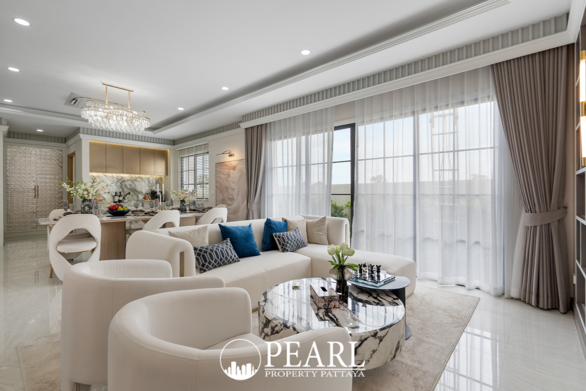 Situated just 3.7 km from Ka Ting Lai Beach, The Palm Grandio’s blends serenity with easy access to Pattaya’s vibrant lifestyle—near international schools, shopping, dining, and major transport links . Inspired by Scandinavian architectural elegance, the development features beautifully landscaped English‑style gardens that evoke European charm.