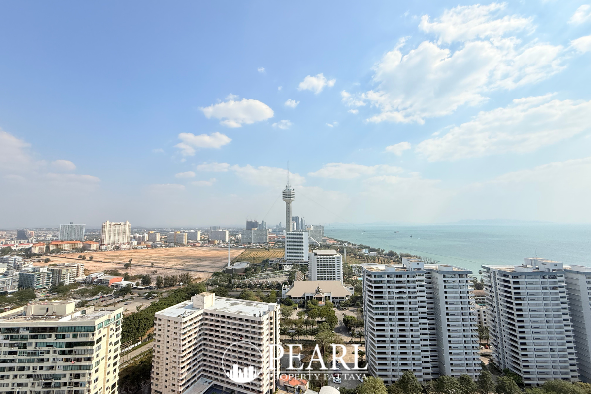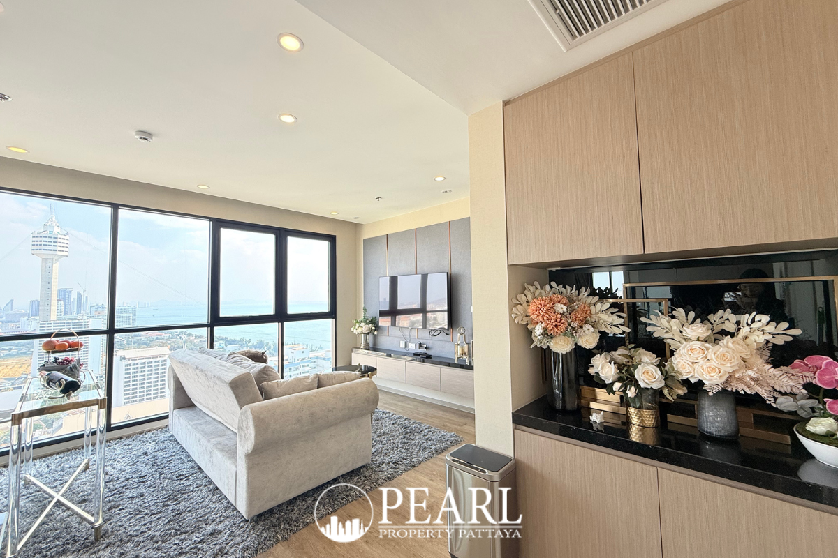 Pearl Property presents an exclusive opportunity to secure a high-floor luxury residence at The Panora Pattaya. Situated on the 31st floor, this premium 2-bedroom, 2-bathroom condominium spans a spacious 78.98 sqm, offering breathtaking, panoramic sea views that stretch across the Gulf of Thailand and Koh Larn.