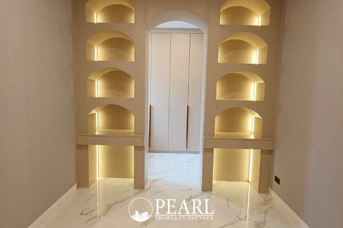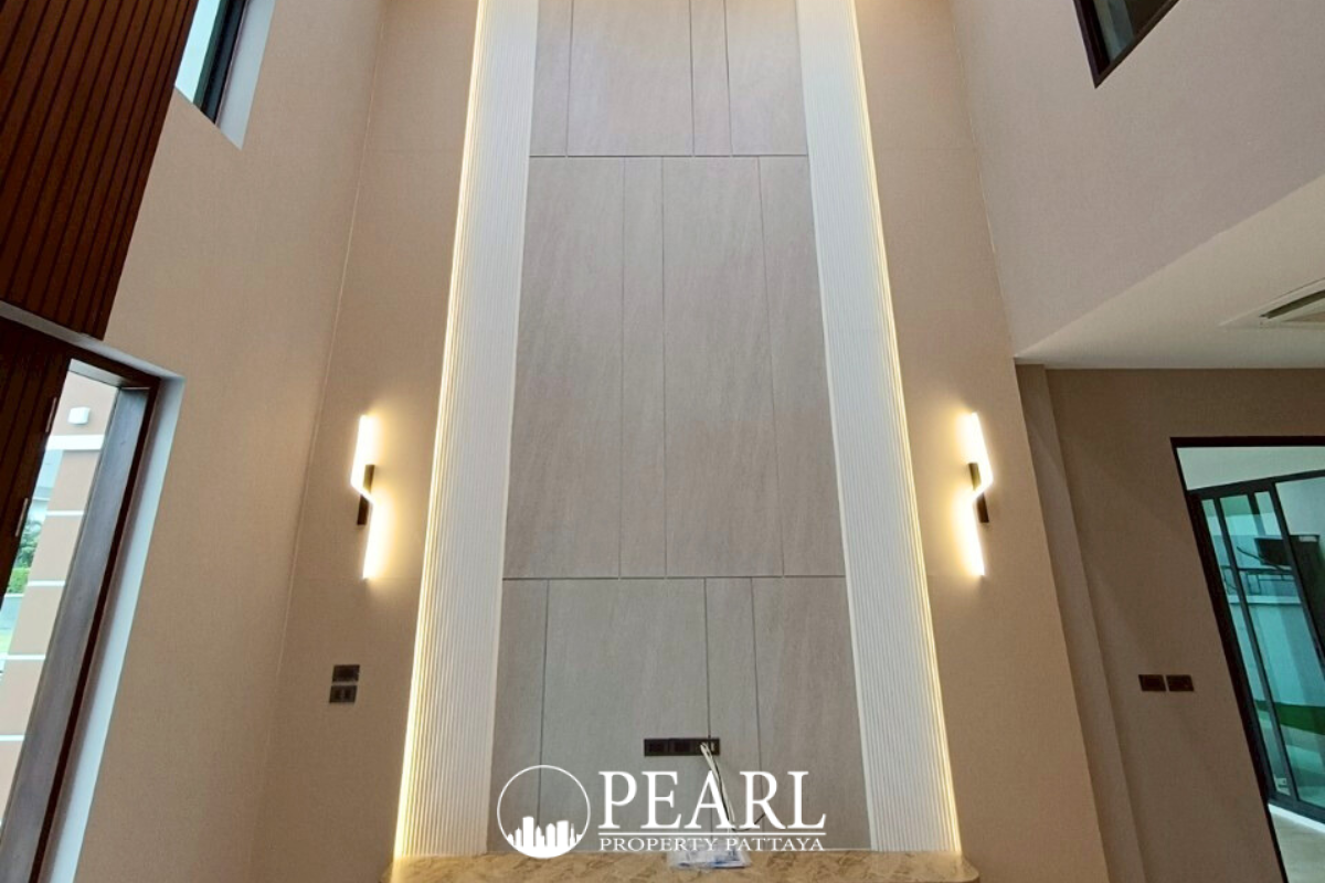 Pearl Property presents this exquisite pool villa in The Village by Horseshoe Point, a peaceful residential enclave in Thung Klom Nong Prue, Bang Lamung—just minutes from international schools, golf courses, and central Pattaya.