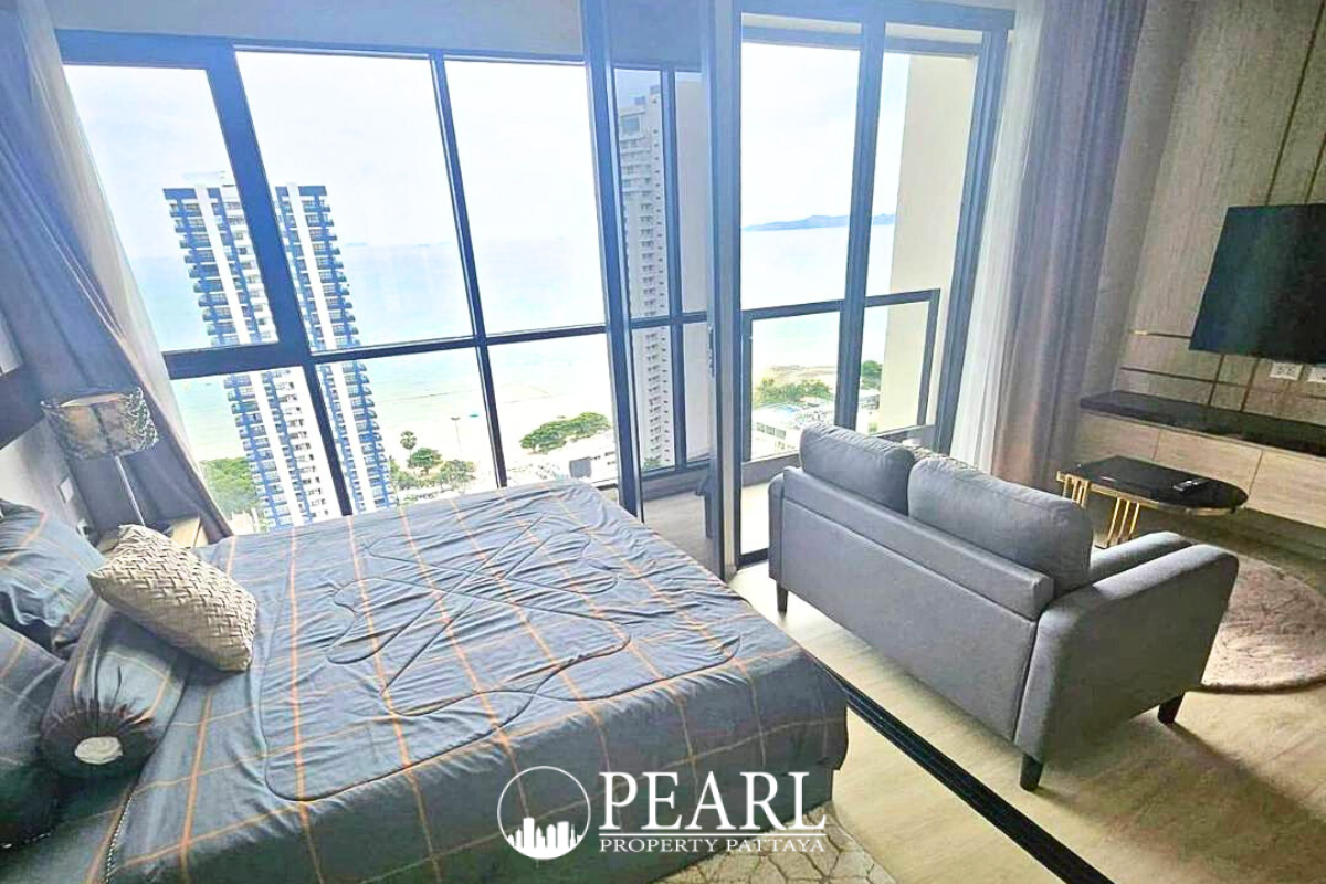 คอนโดขนาด 34 ตร.ม. 1 ห้องนอน บนชั้นสูงของโครงการ ได้รับการออกแบบอย่างพิถีพิถัน ผสมผสานความหรูหราและความสะดวกสบายไว้อย่างลงตัว พร้อมหน้าต่างสูงจากพื้นจรดเพดาน เปิดรับวิวทะเลอย่างเต็มตา เหมาะทั้งสำหรับการพักผ่อนส่วนตัวและการลงทุนปล่อยเช่า